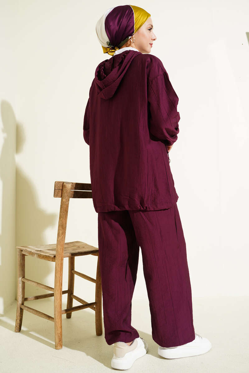 Kapüşonlu Çift Torba Cepli İkili Takım Bordo
