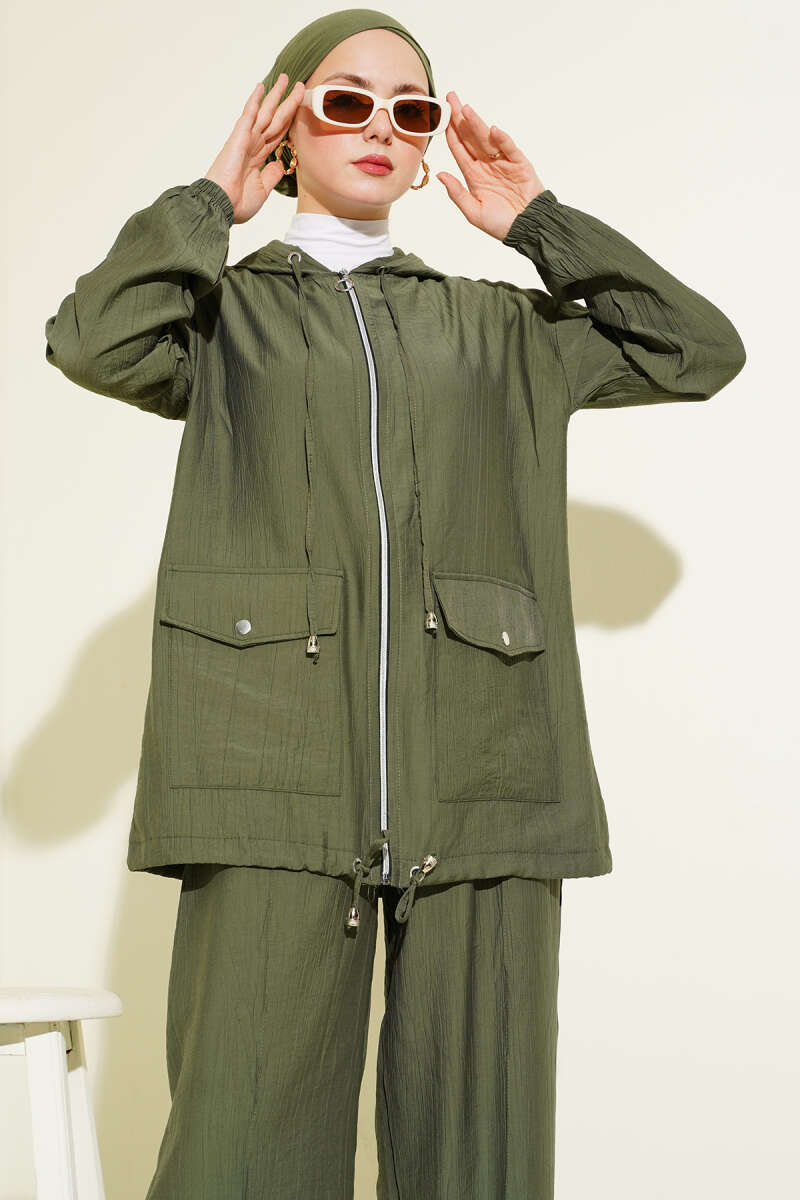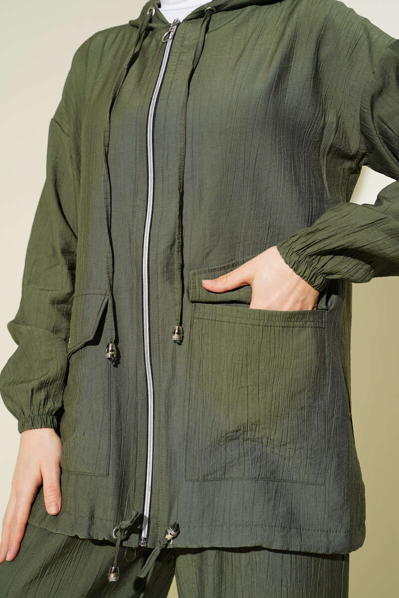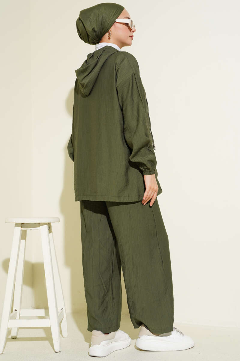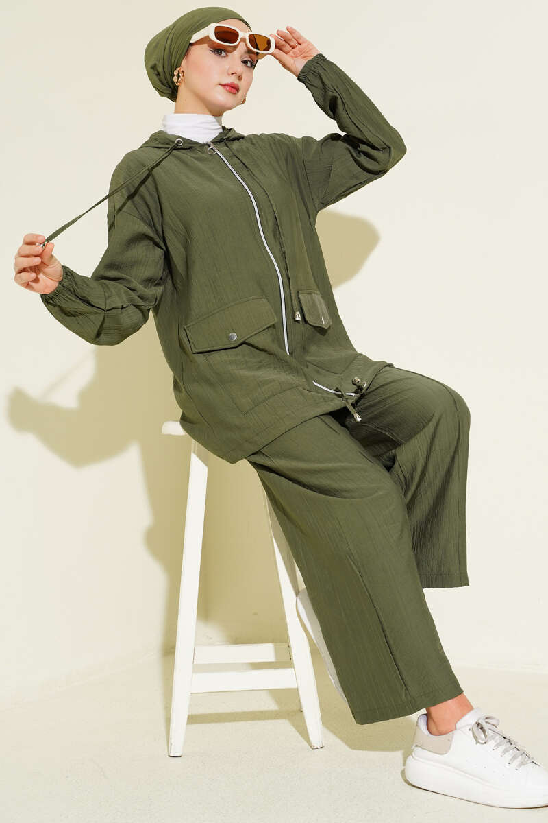 Kapüşonlu Çift Torba Cepli İkili Takım Haki