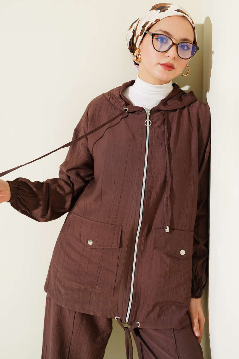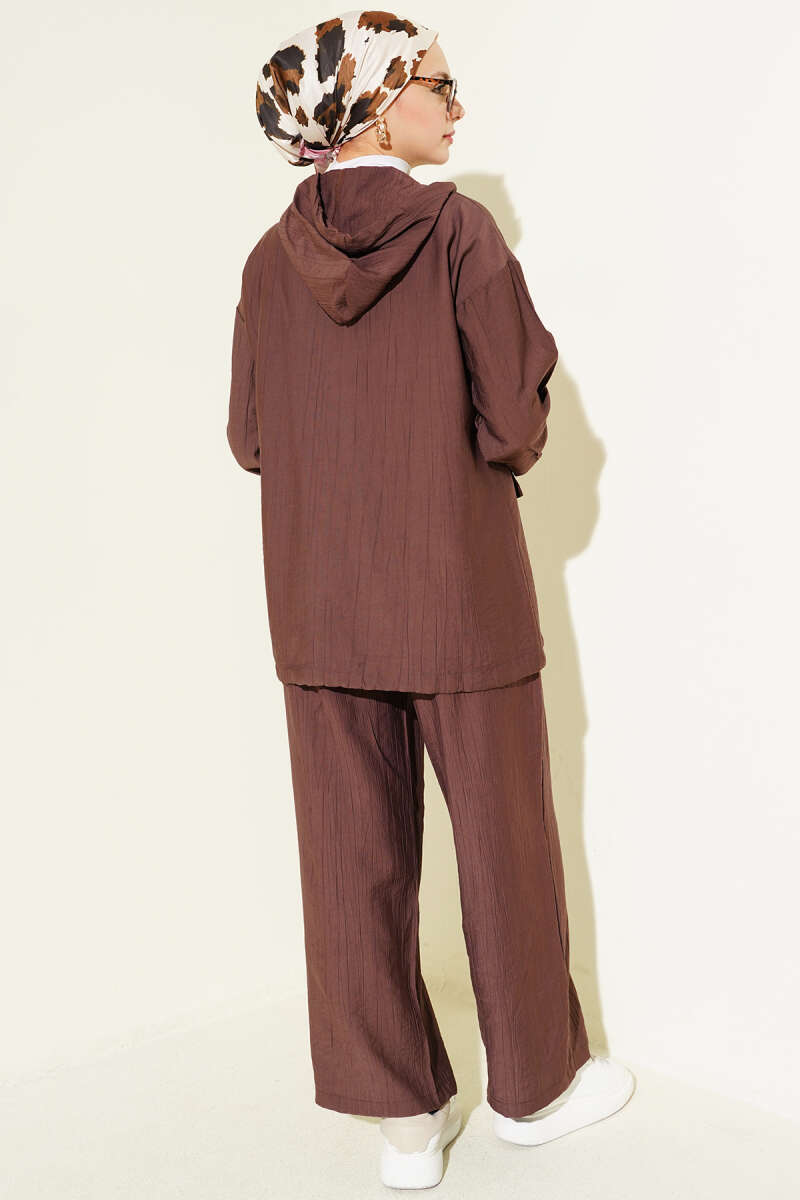 Kapüşonlu Çift Torba Cepli İkili Takım Kahve