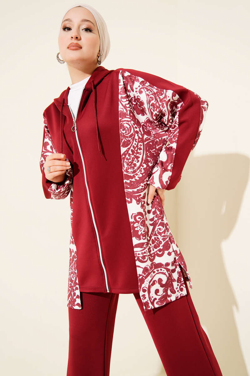 Kapüşonlu Desenli Scuba İkili Takım Kahve