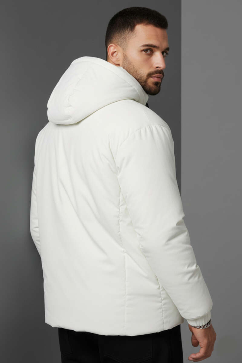 Kapüşonlu Fermuarlı Erkek Şişme Mont Beyaz