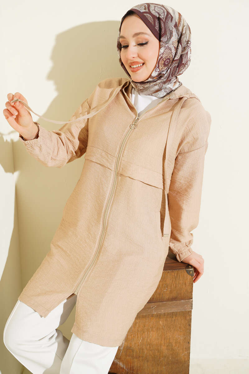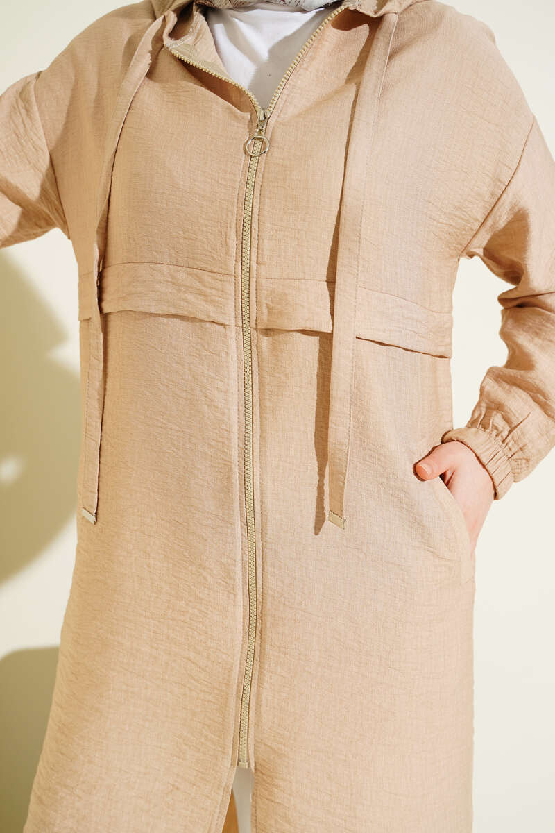 Balon Kol Kuşak Detaylı Kap Bej