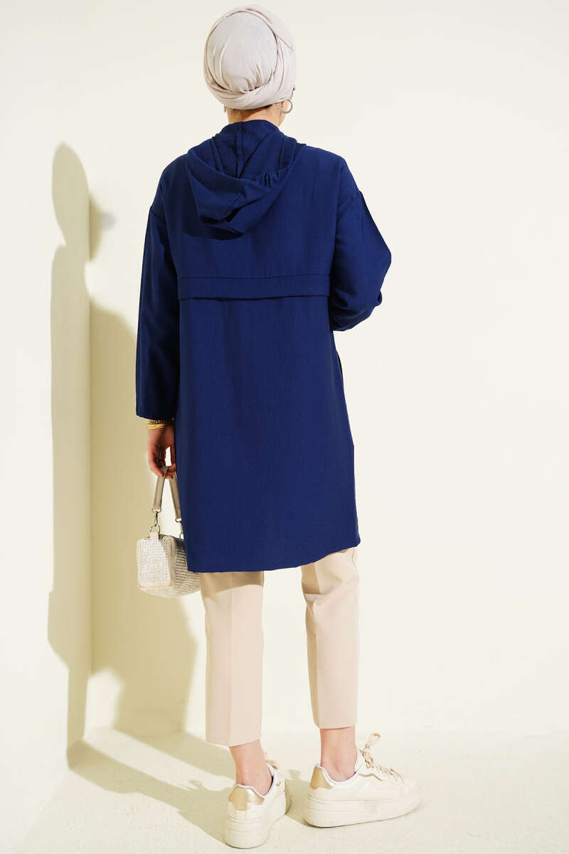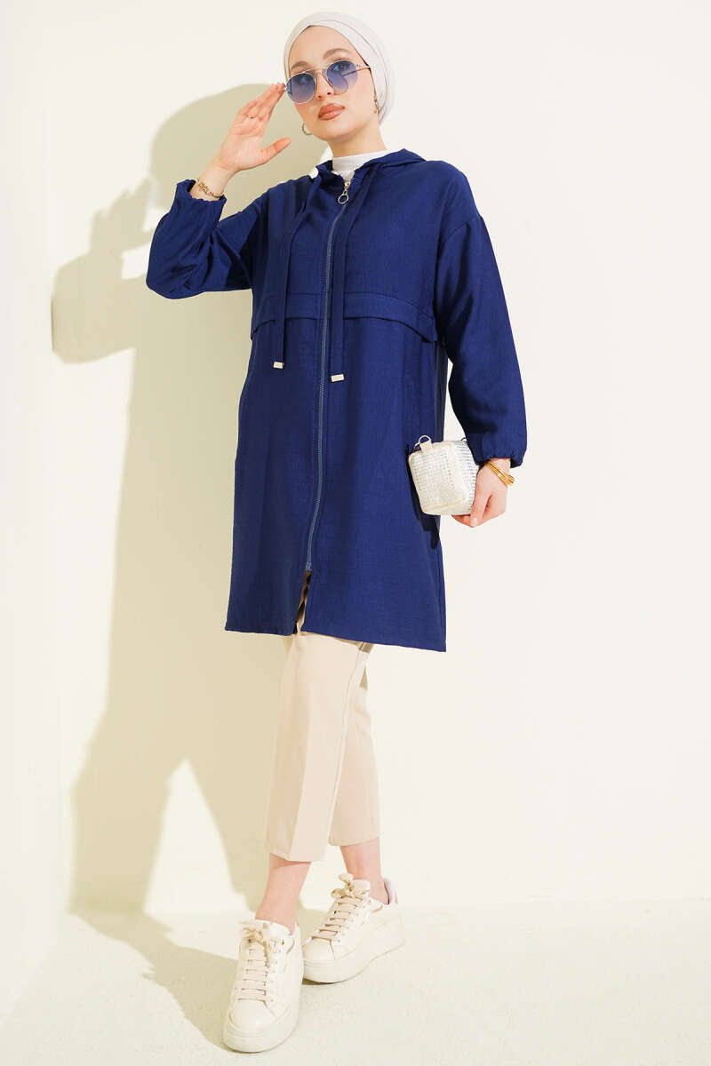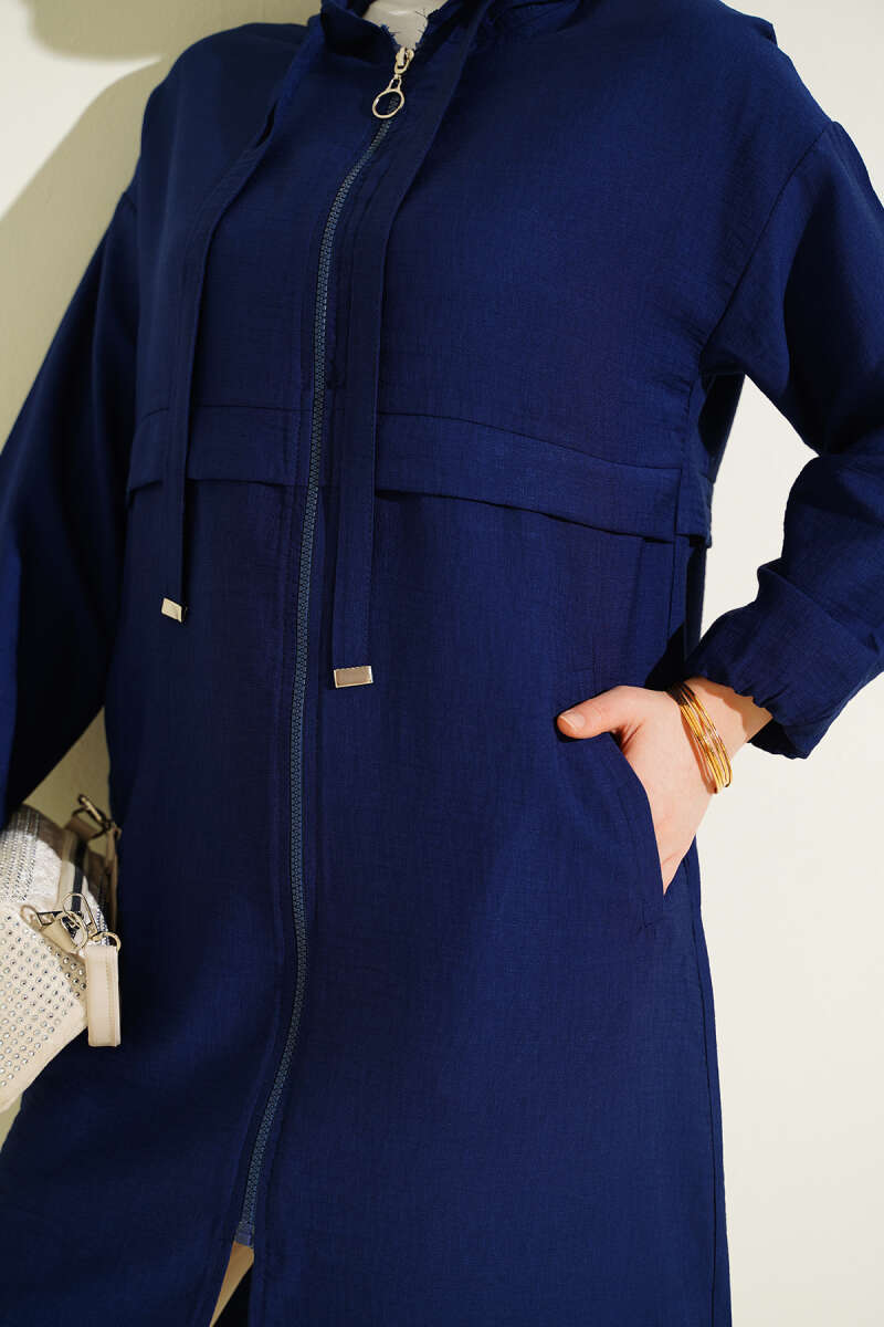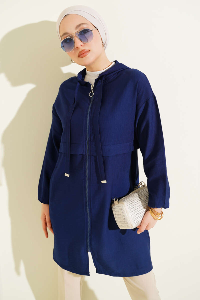 Kapüşonlu Fermuar Detaylı Araboy Kap Lacivert