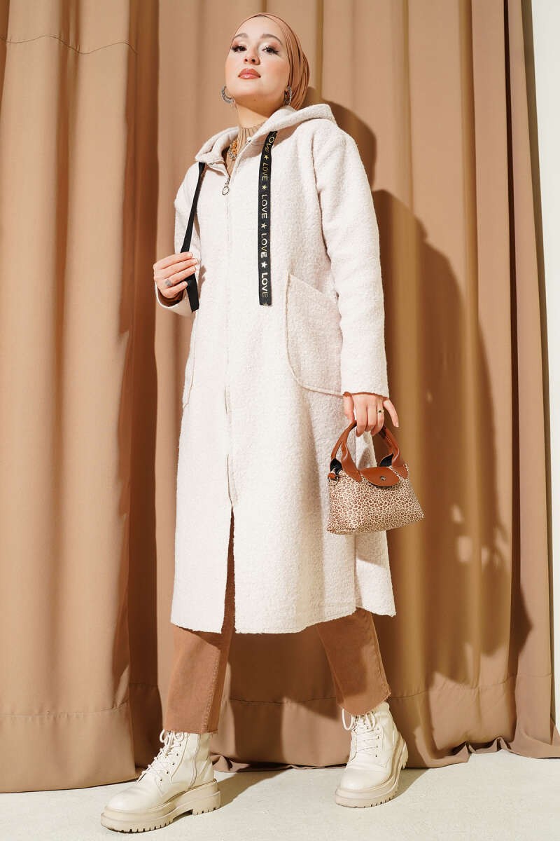 Önü Bağcıklı Sakallı Kısa Kimono Ekru