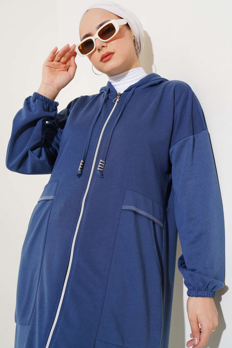 Bilek İpli Fitilli Kaşe Tunik Lacivert