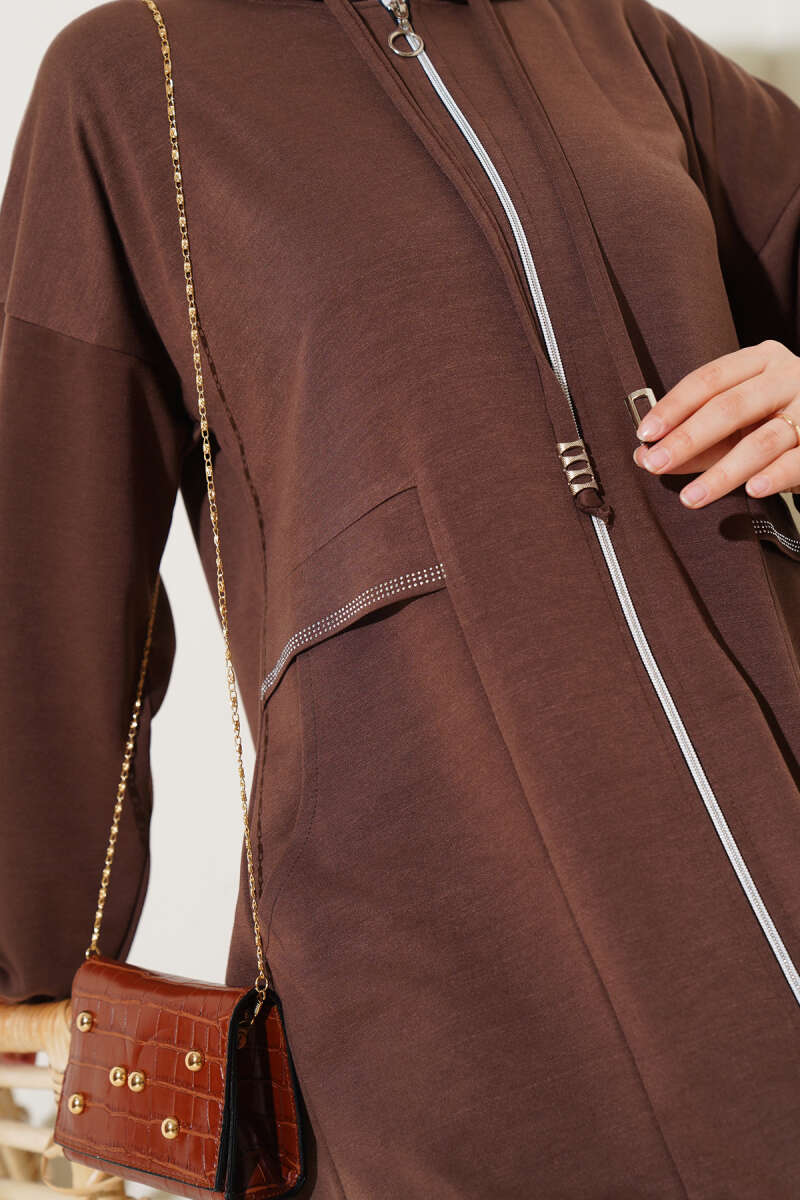 Bilek İpli Fitilli Kaşe Tunik Kahve