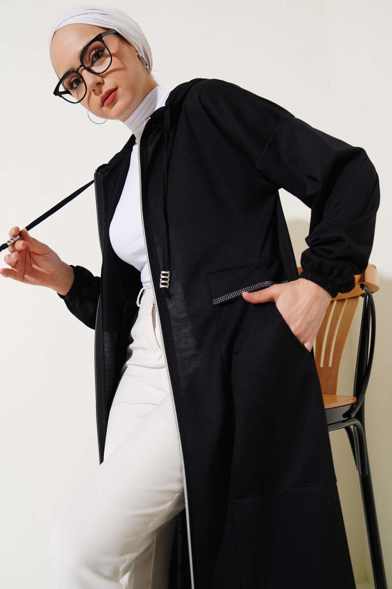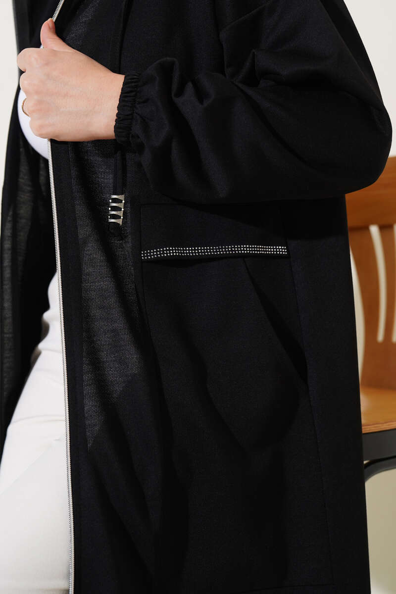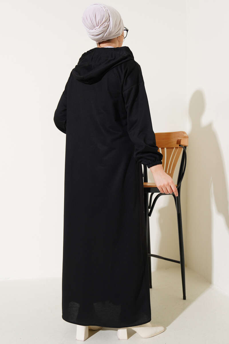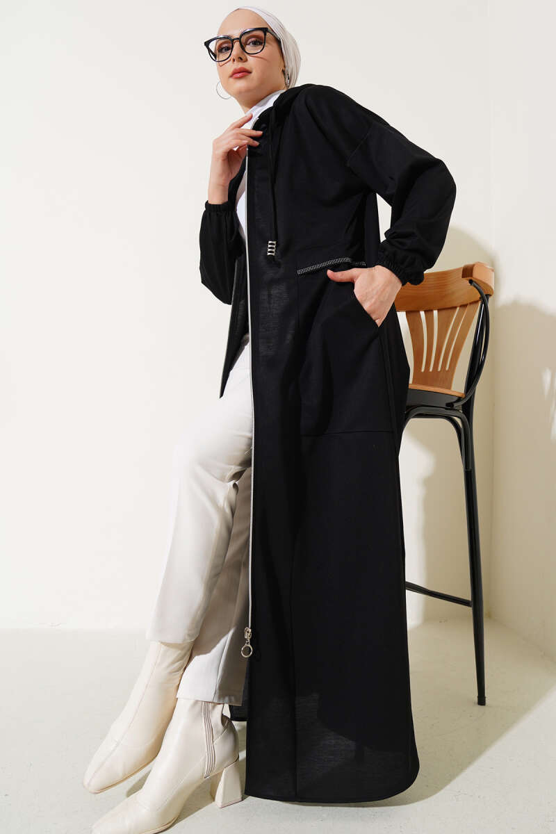 Kapüşonlu Fermuarlı Cepli Ferace Bordo