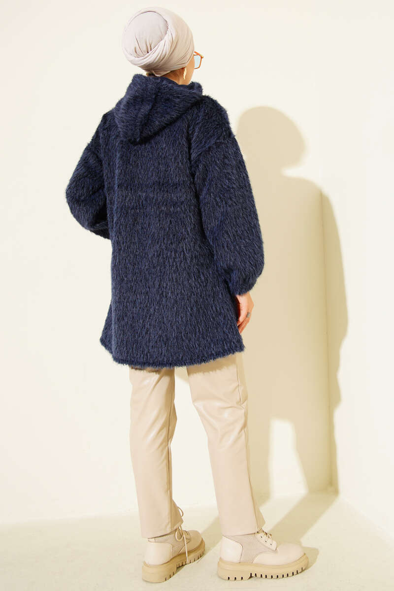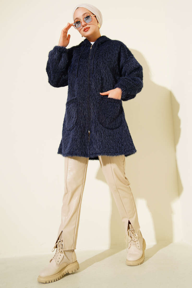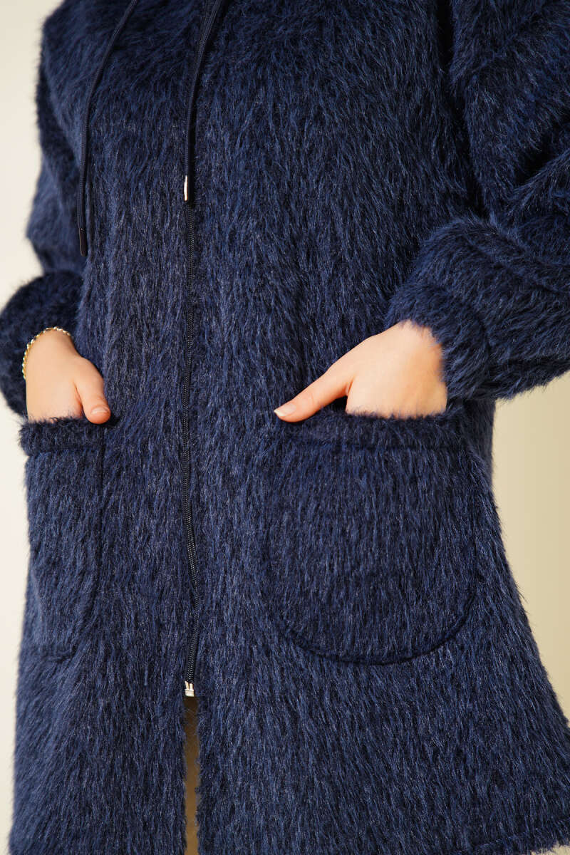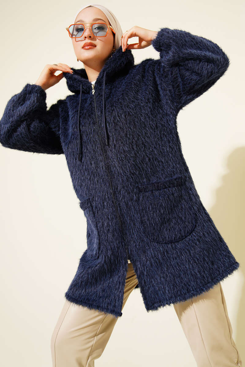 Kapüşonlu Fermuarlı Cepli Hırka Lacivert