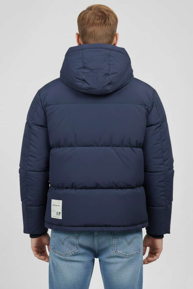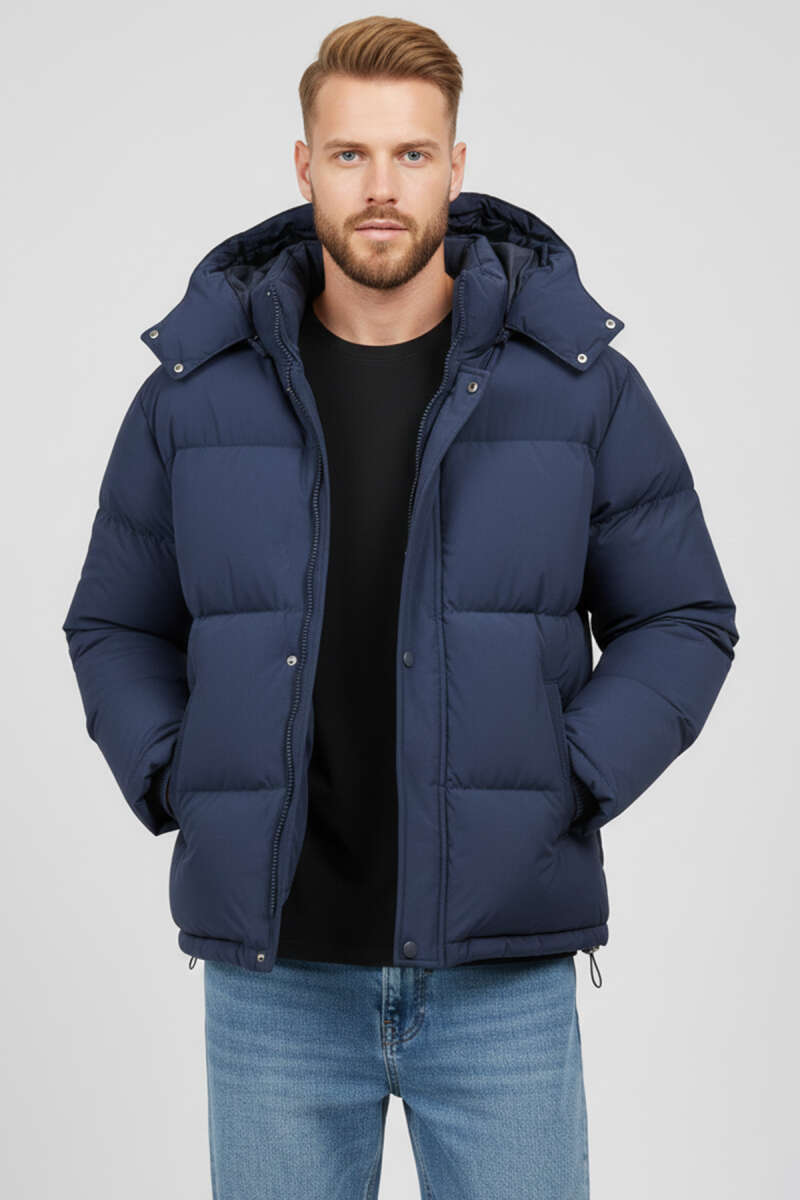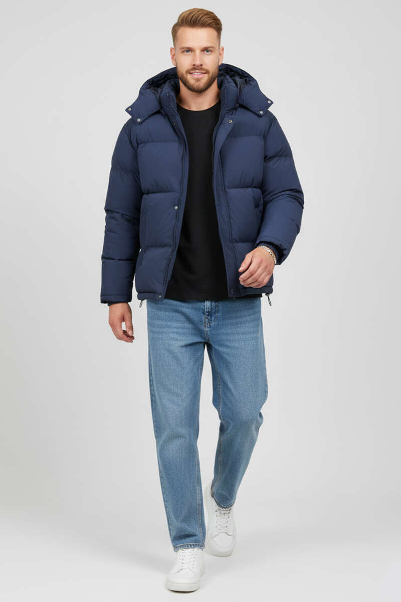 Kapüşonlu Fermuarlı Erkek Şişme Mont Lacivert