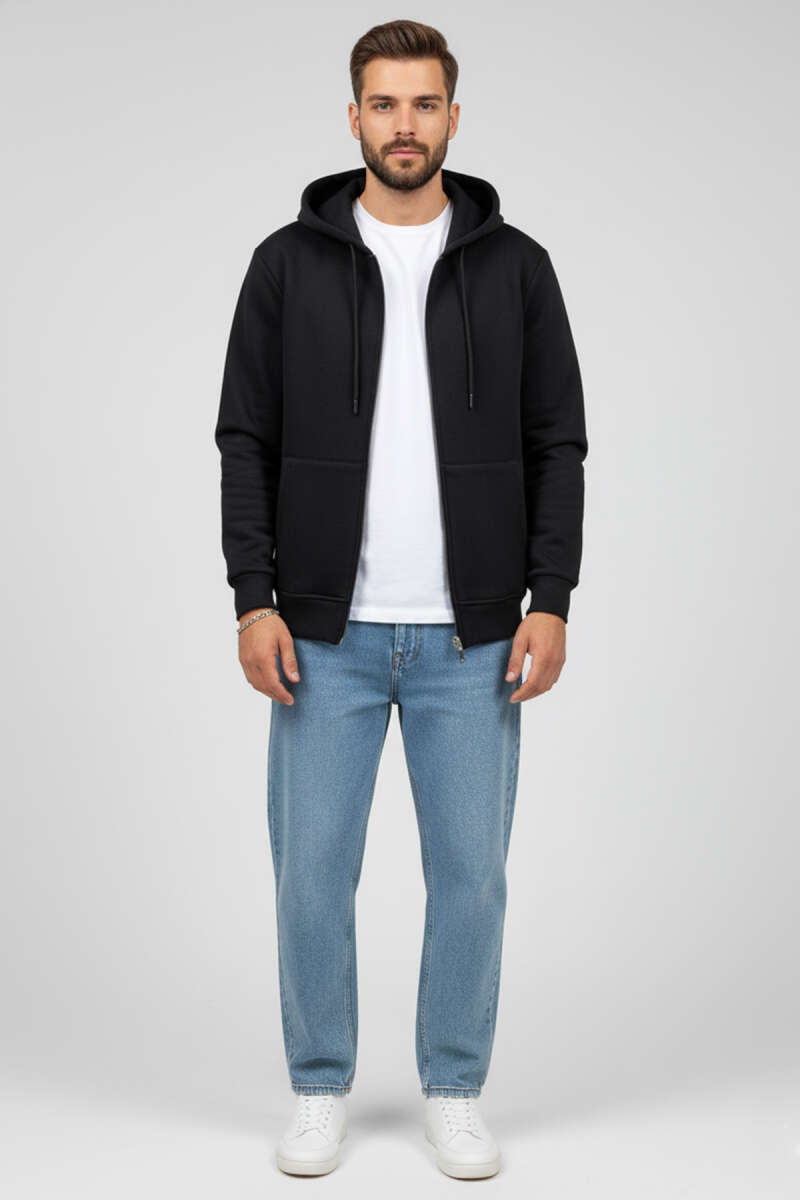 Kapüşonlu Fermuarlı Hırka Lacivert