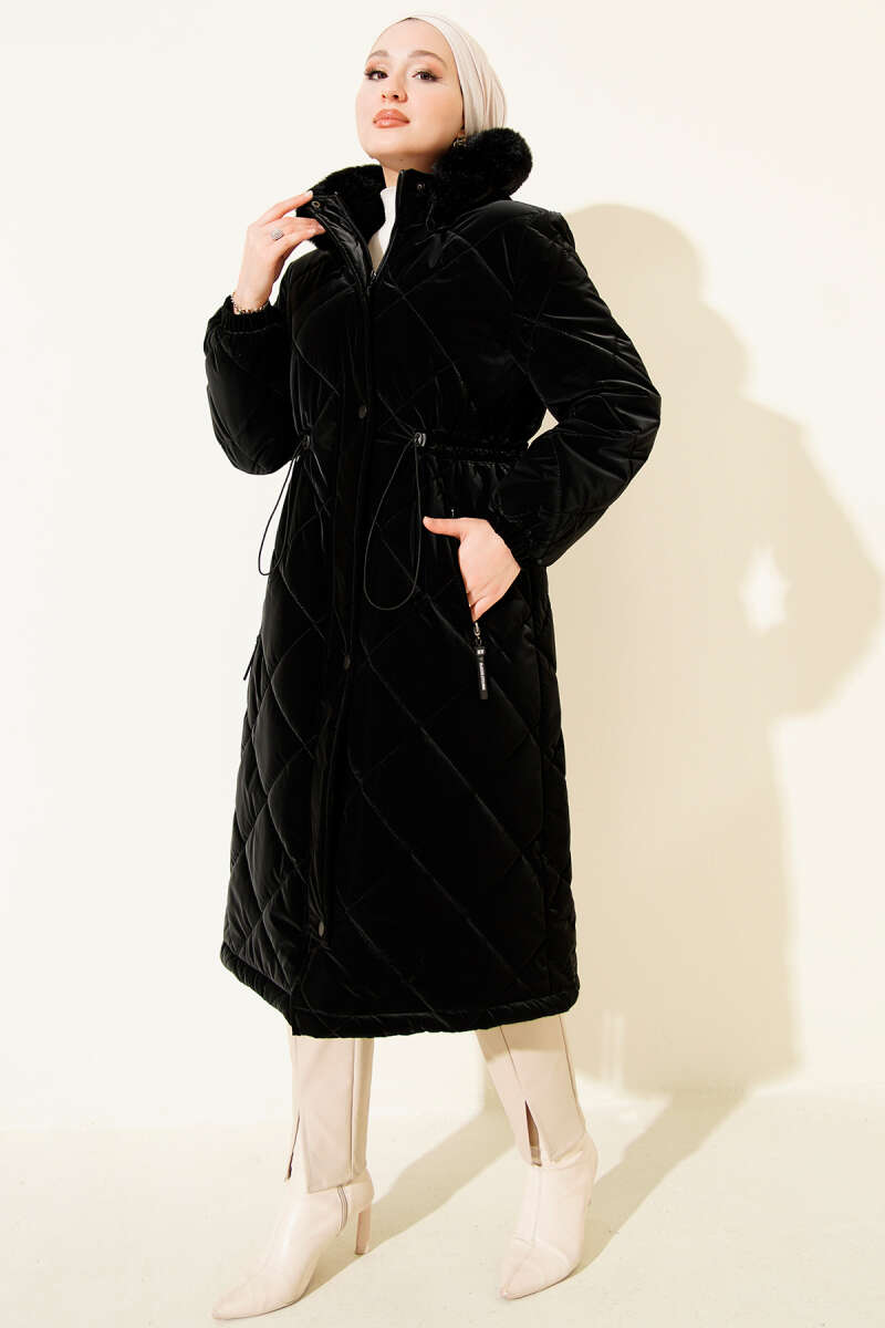 Su Yolu Kapitone Fermuarlı Mont Siyah