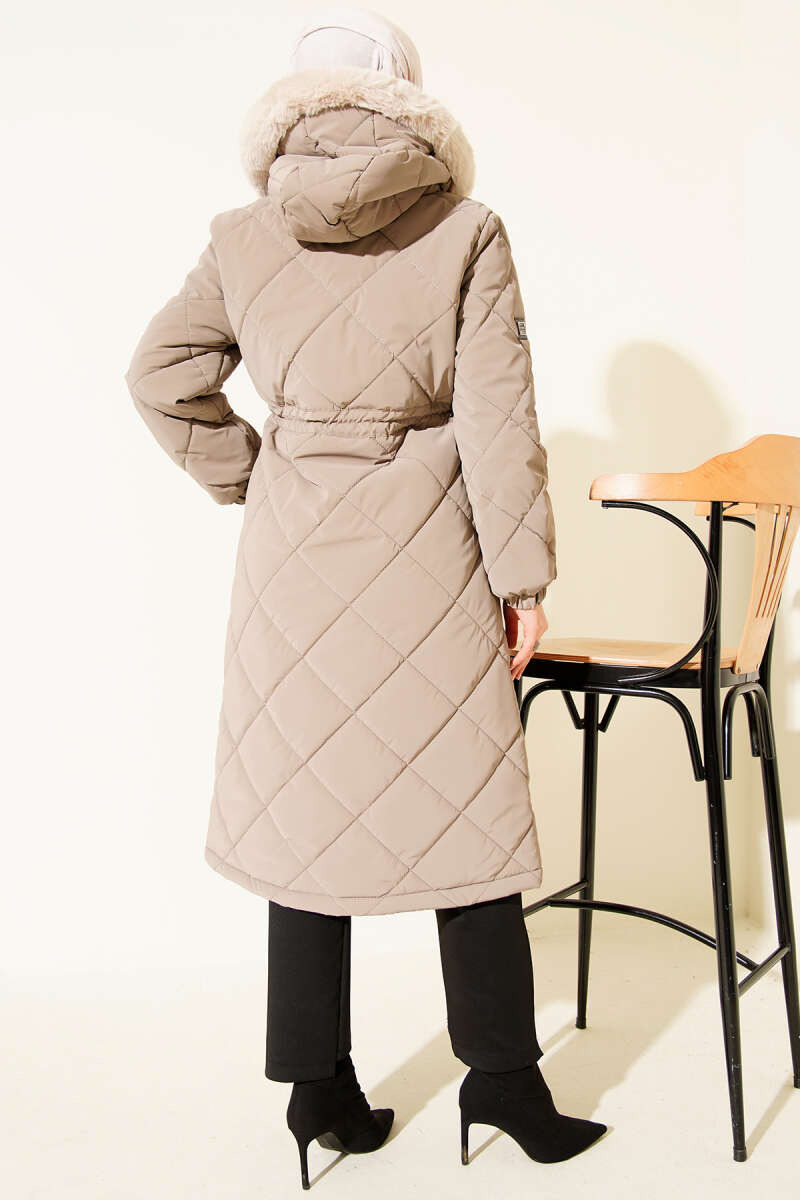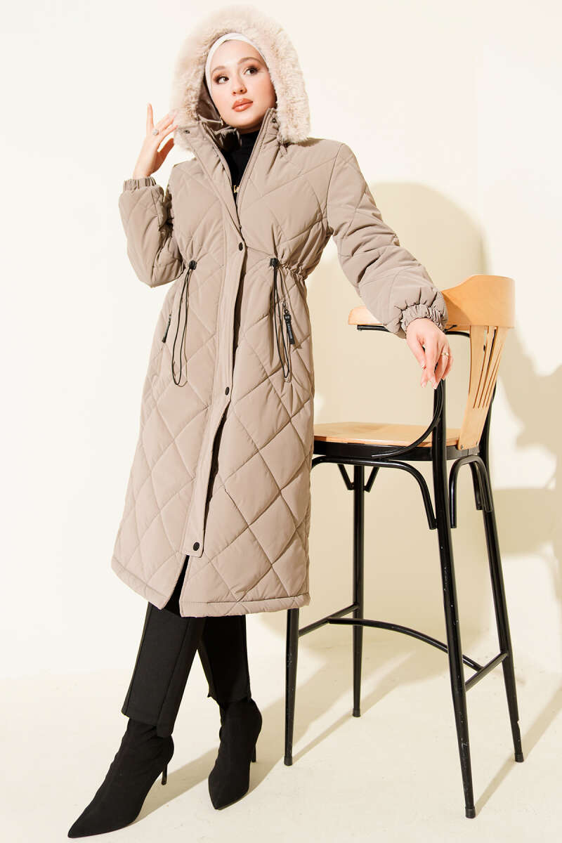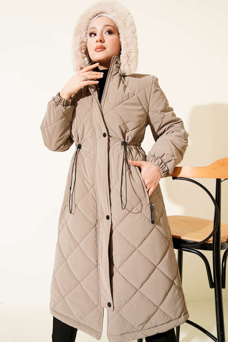 Kapüşonlu Fermuarlı Kapitone Şişme Mont Füme