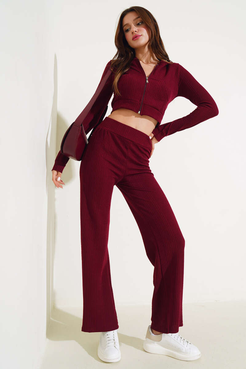 Uzun Kollu Yarım Fermuarlı Bluz Bordo