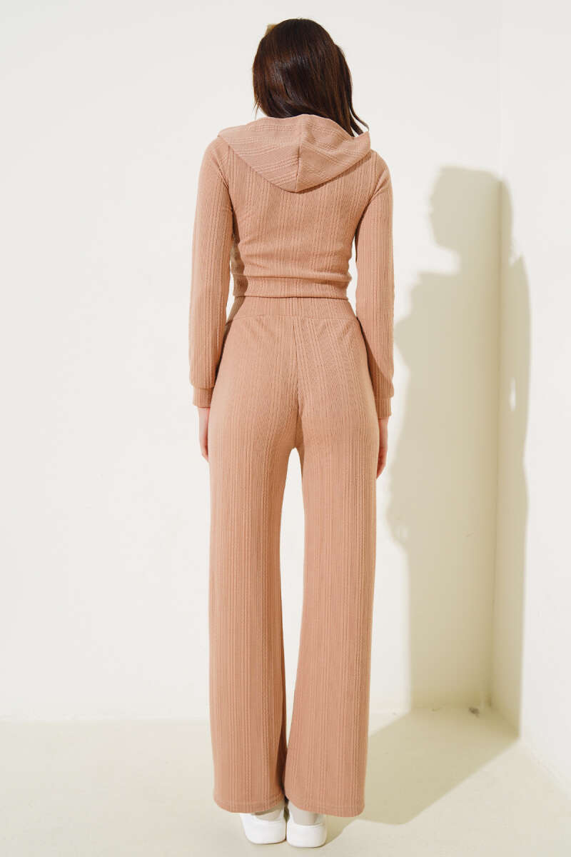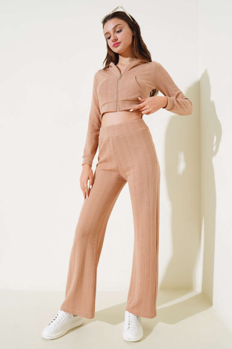 Mini Zigzag Desenli Kaşe Kaban Vizon