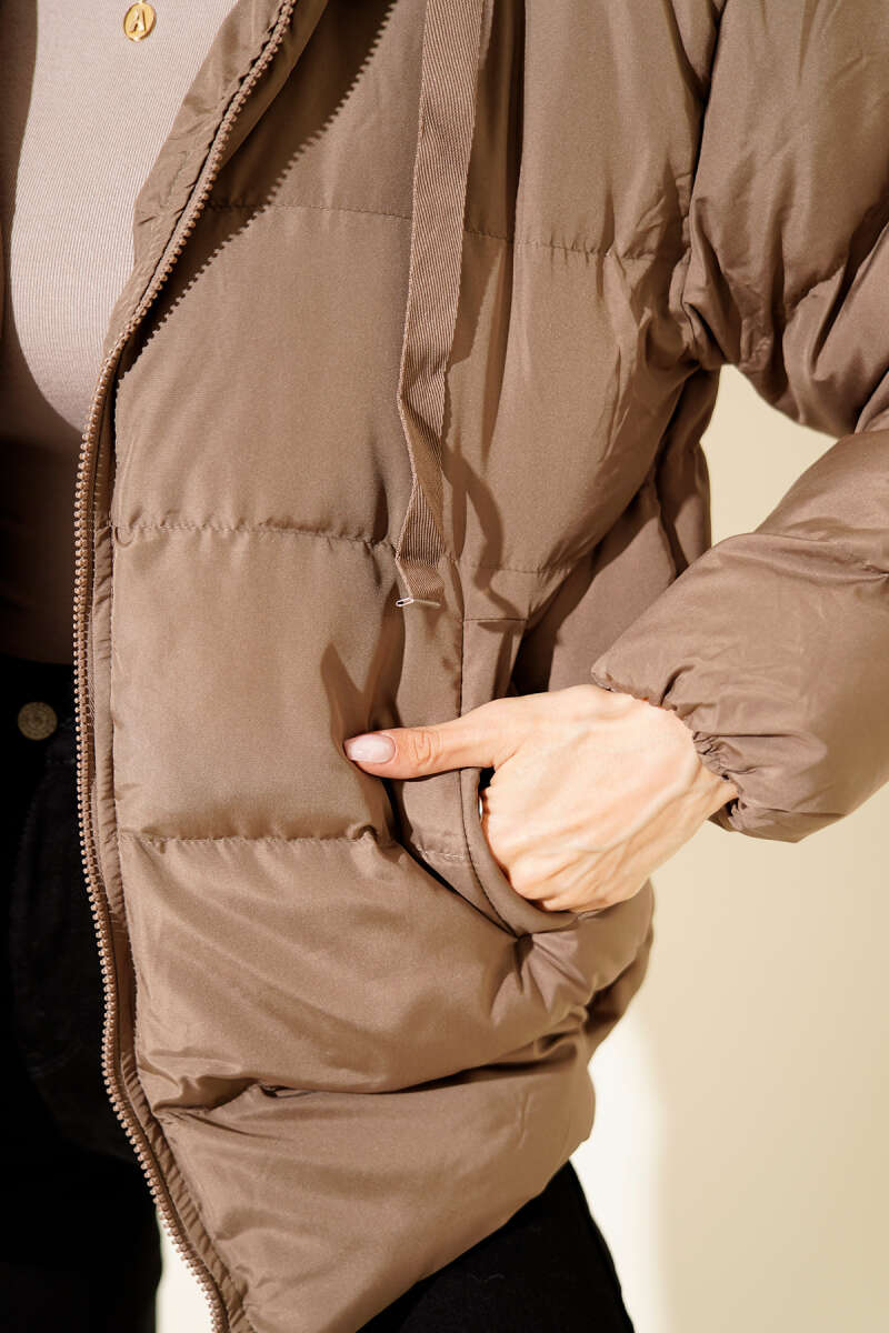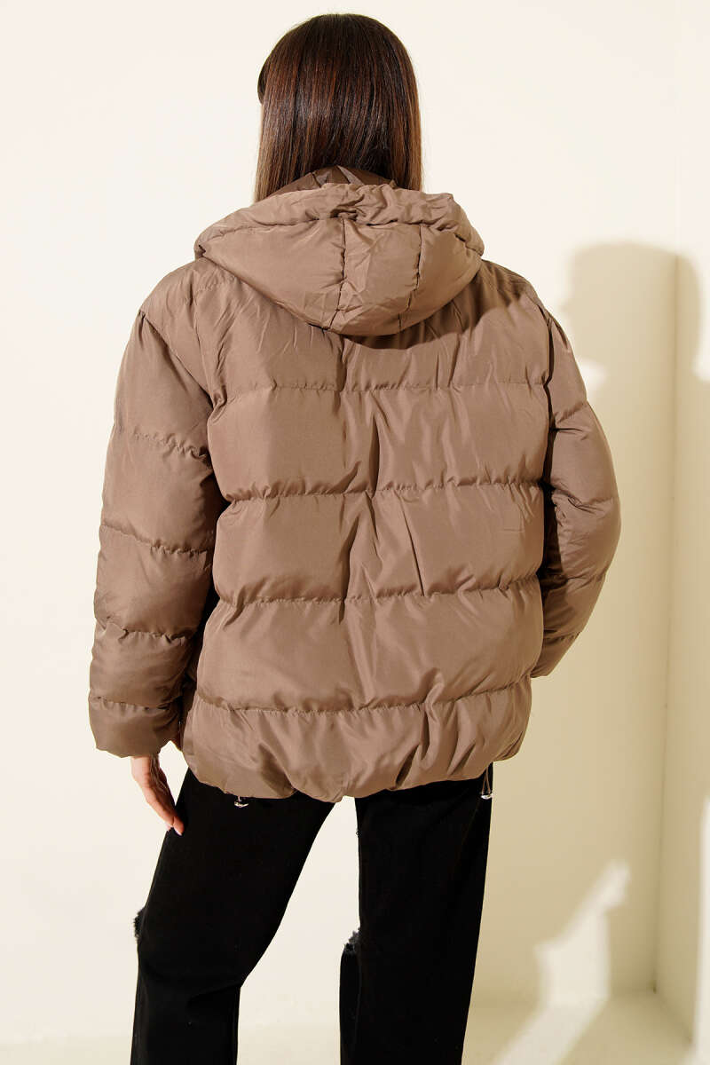 Etek Ucu Lastikli Kısa Şişme Mont Bej