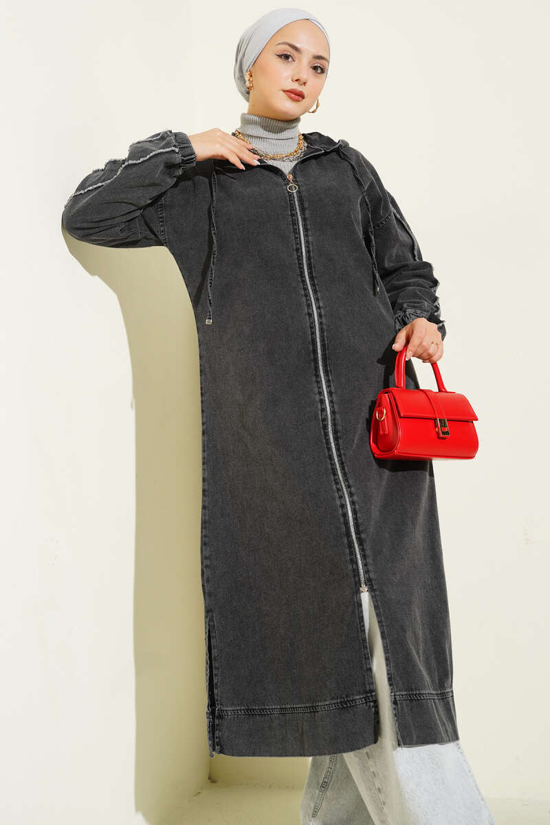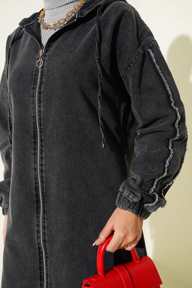 Taşlı Fermuarlı Kısa Triko Hırka Antrasit
