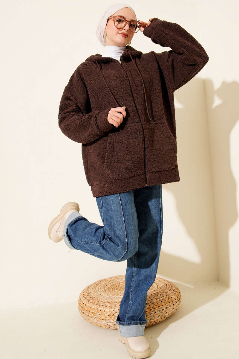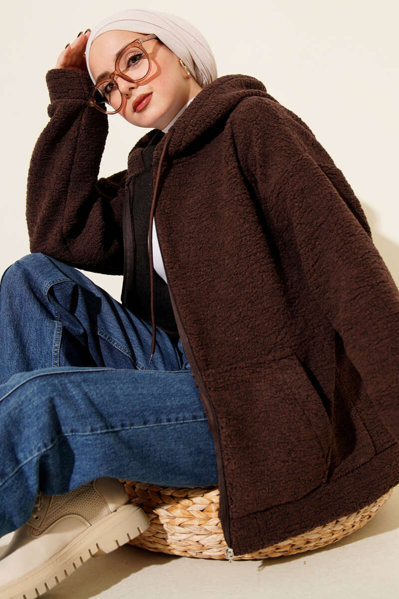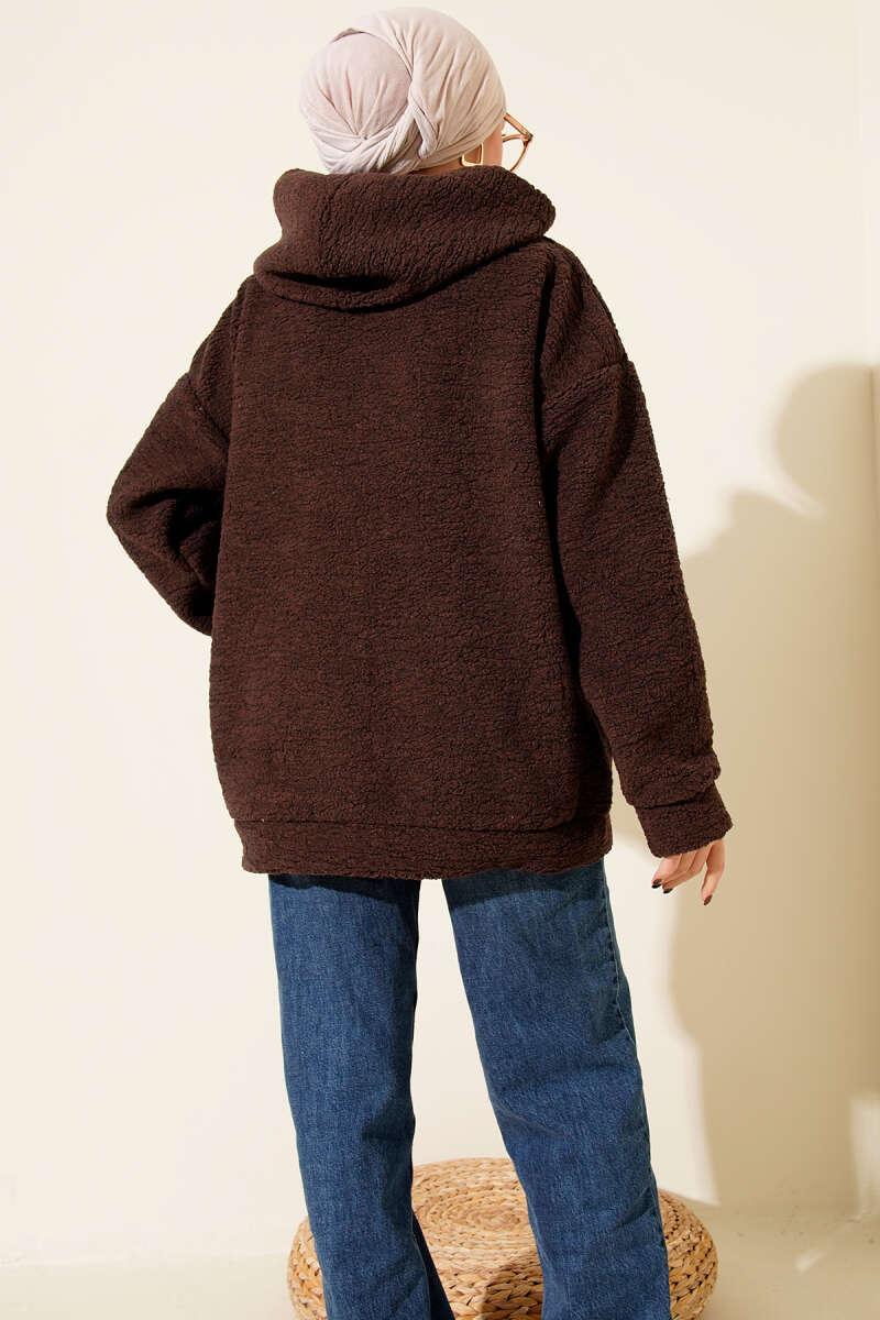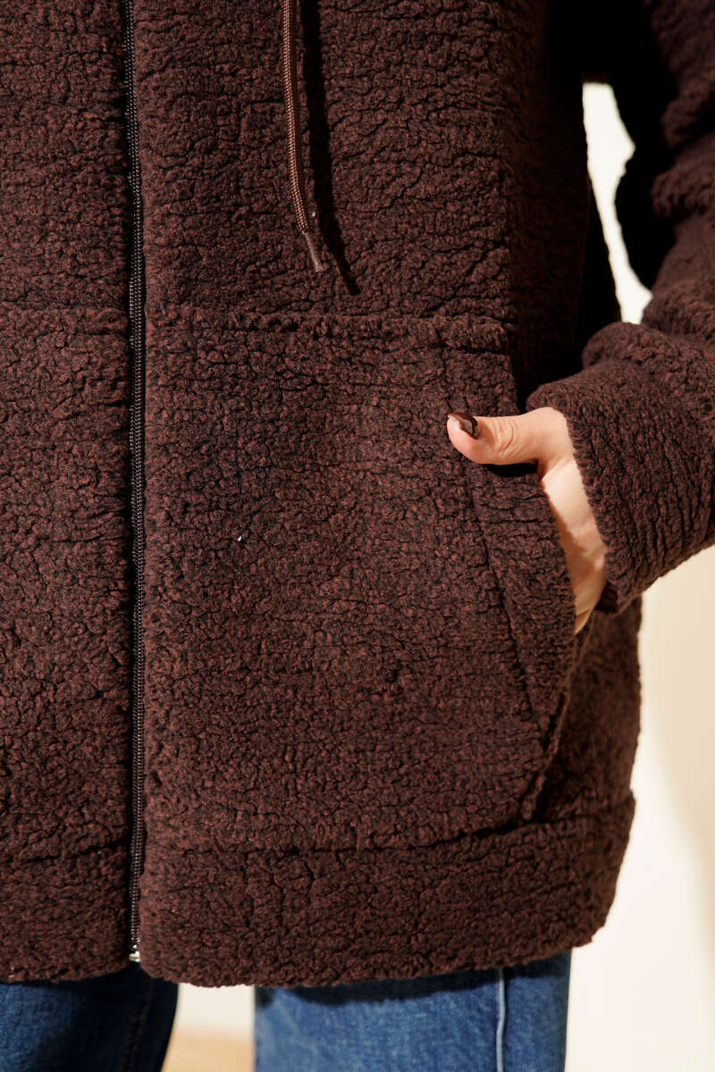 Bilek İpli Fitilli Kaşe Tunik Kahve