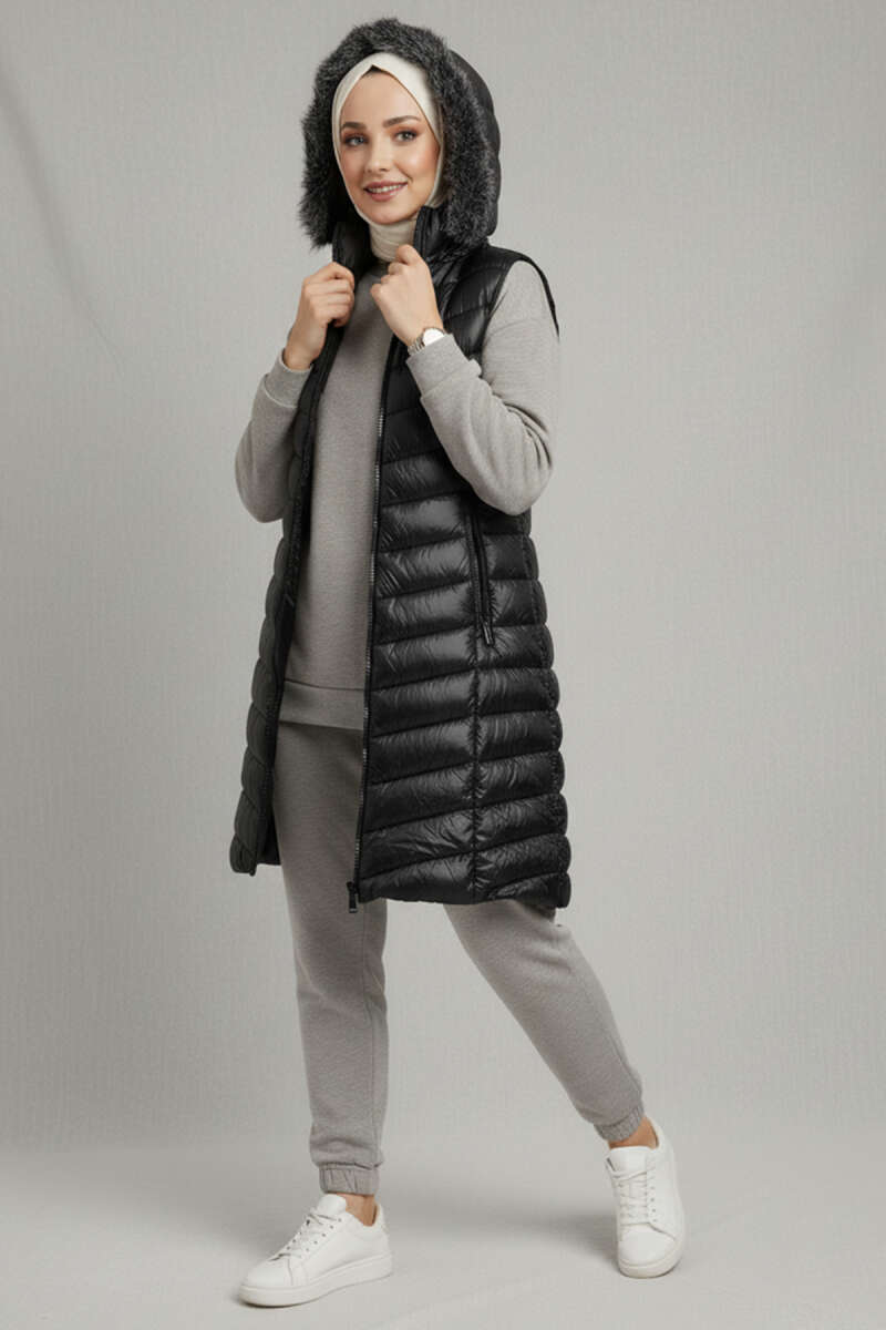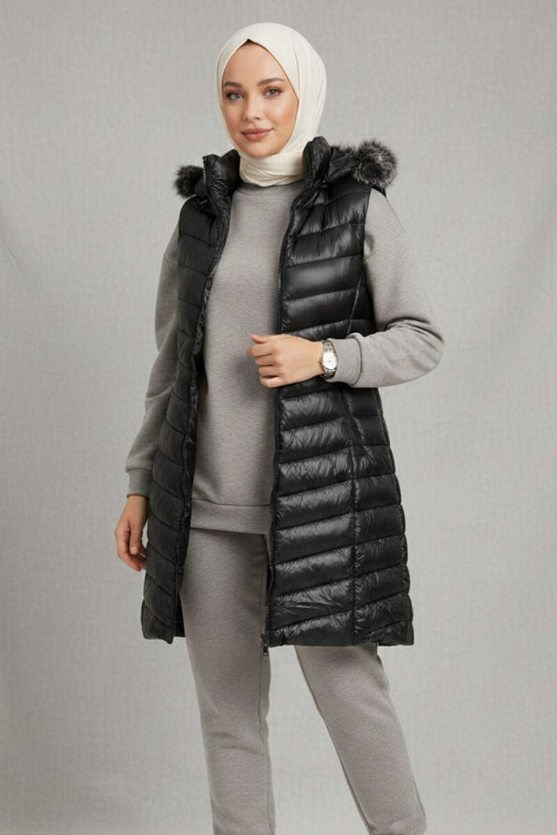 Fermuarlı Çift Taraflı Şişme Yelek Leopar Siyah