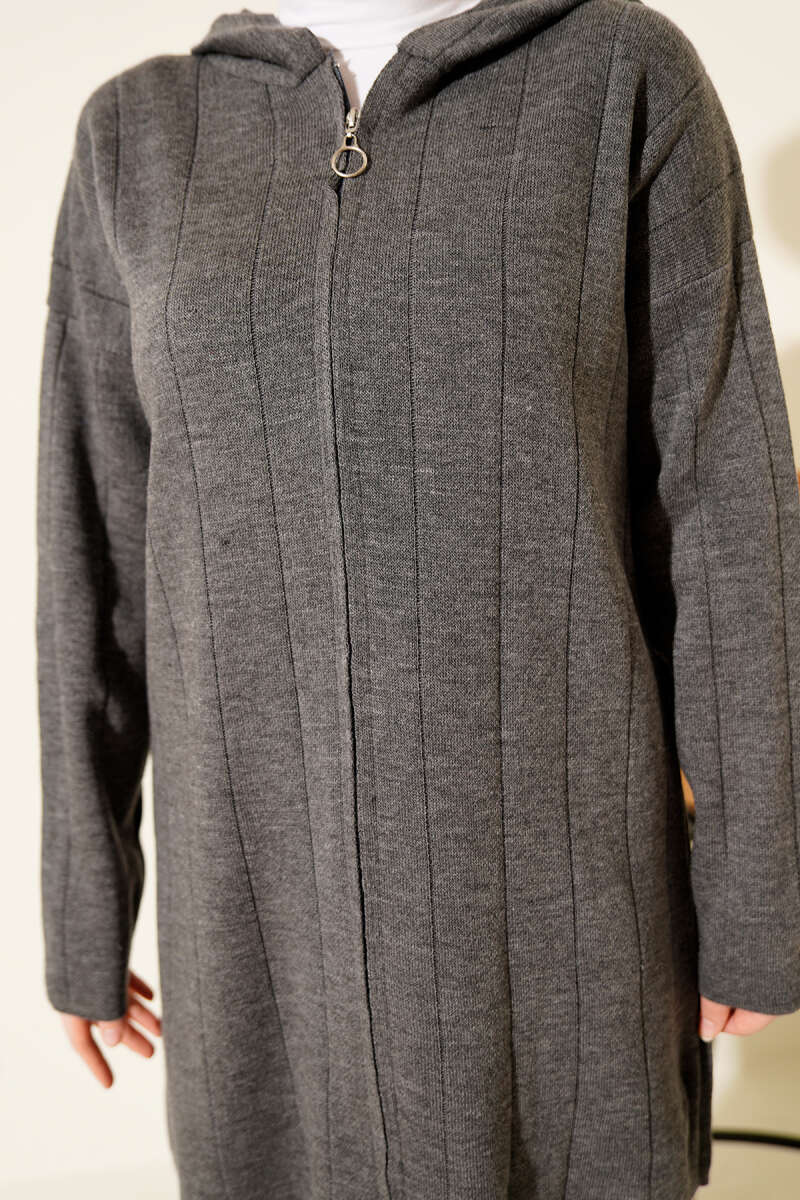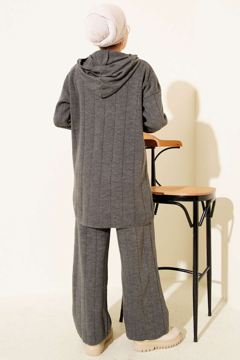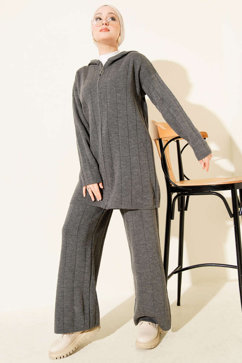 Kapüşonlu Fermuarlı Triko İkili Takım Vizon