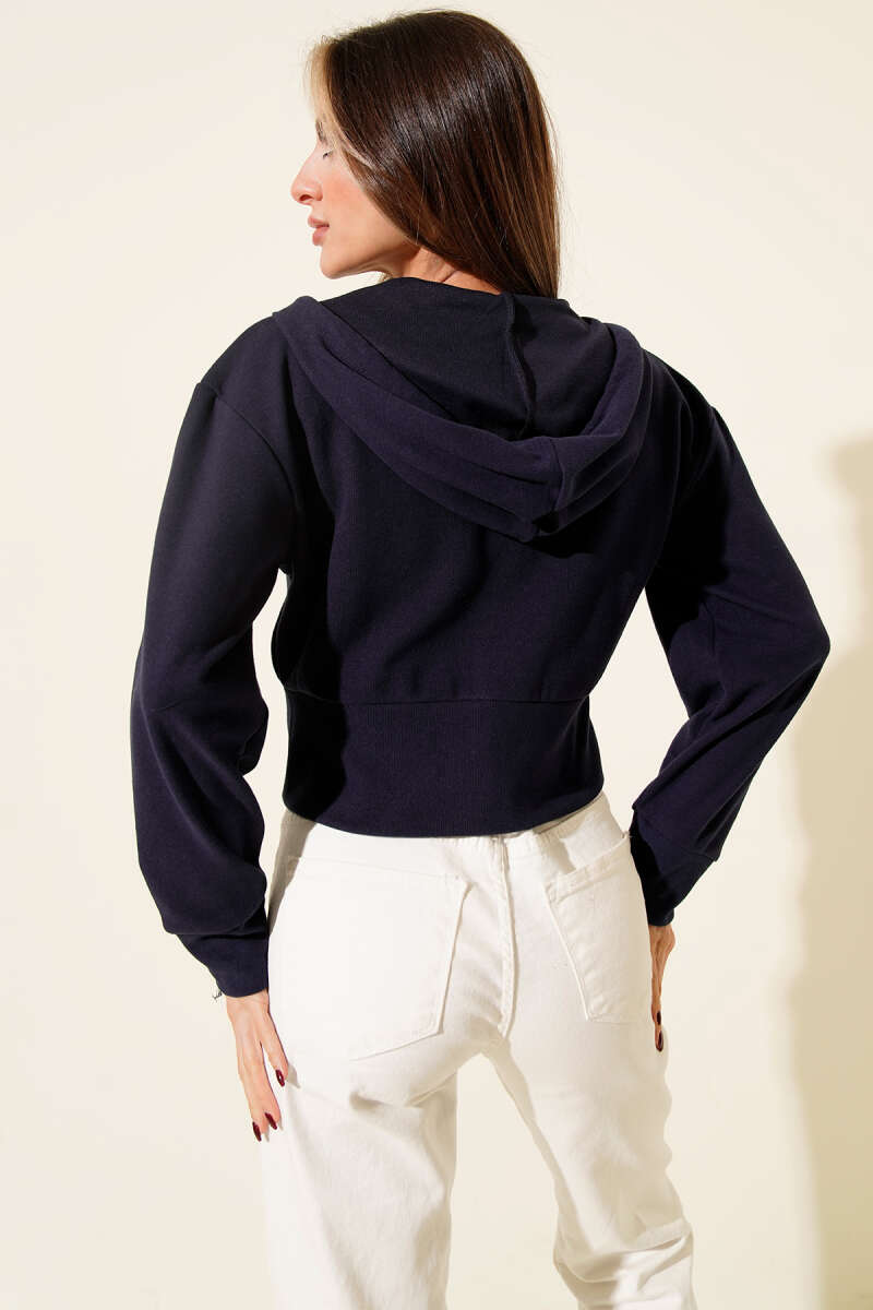 Fermuarlı Kapüşonlu Kısa Şişme Mont Siyah