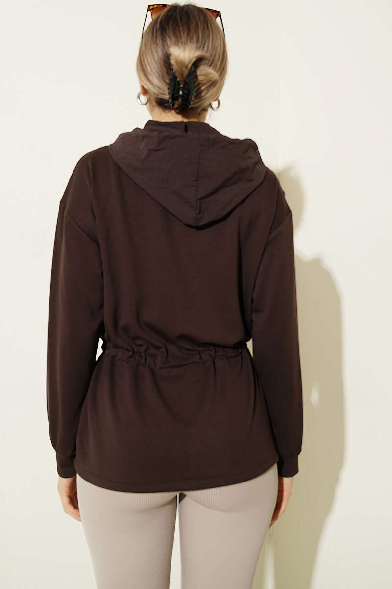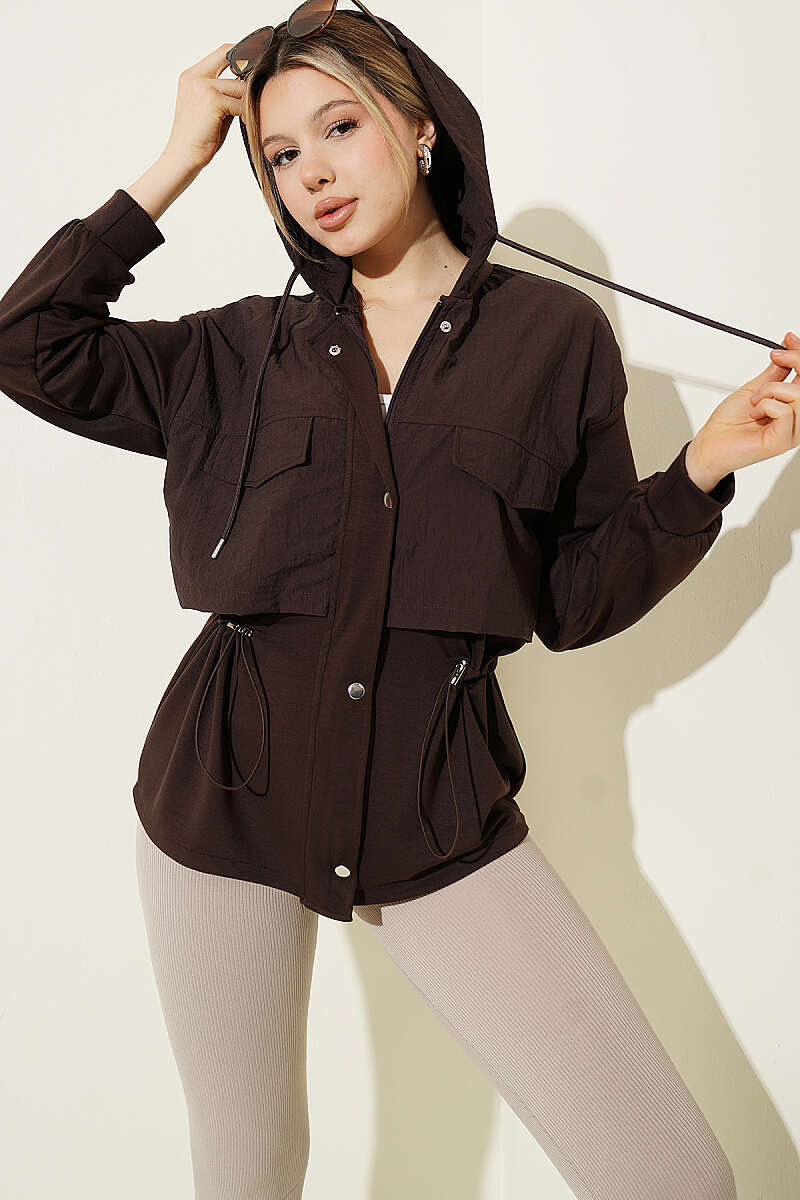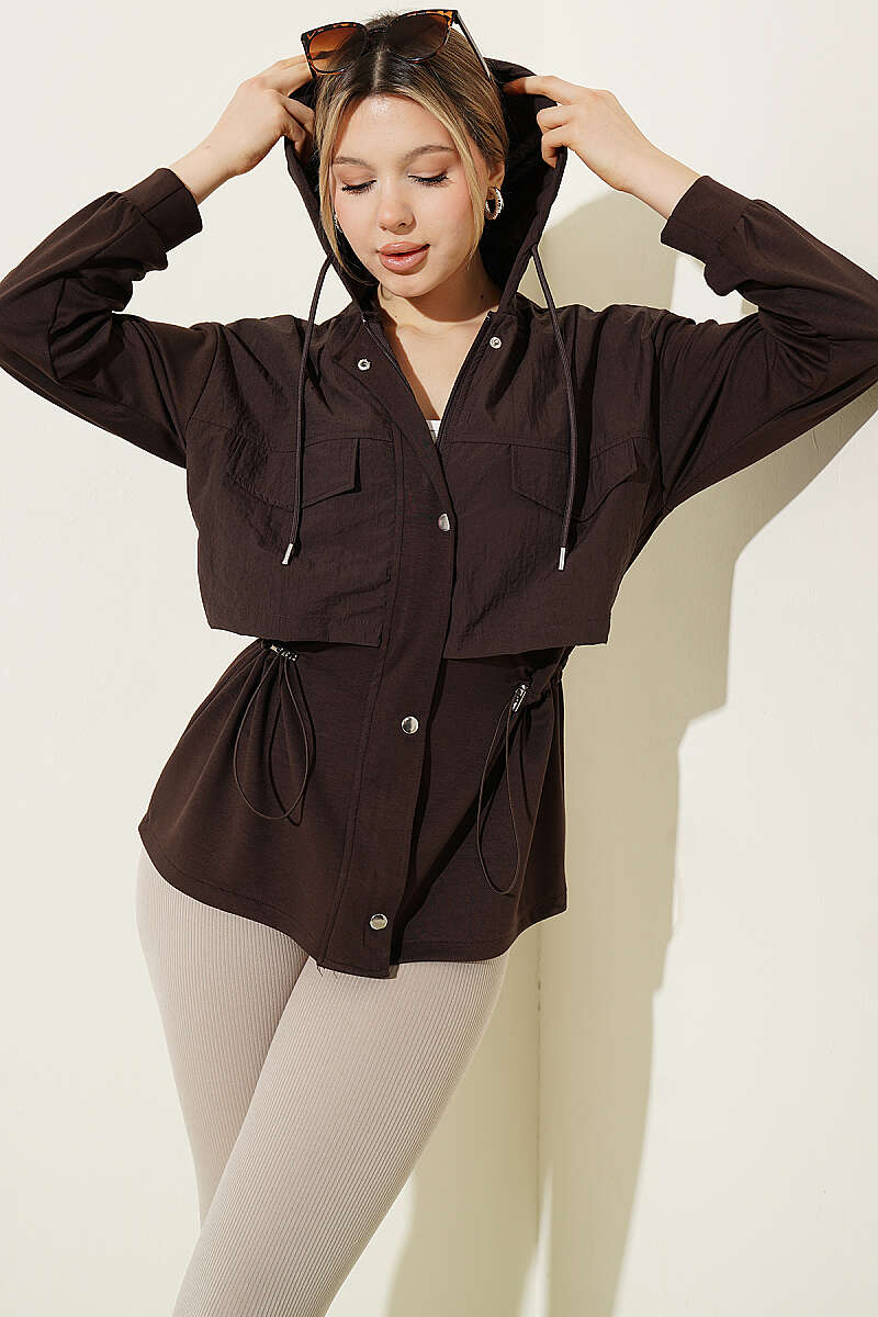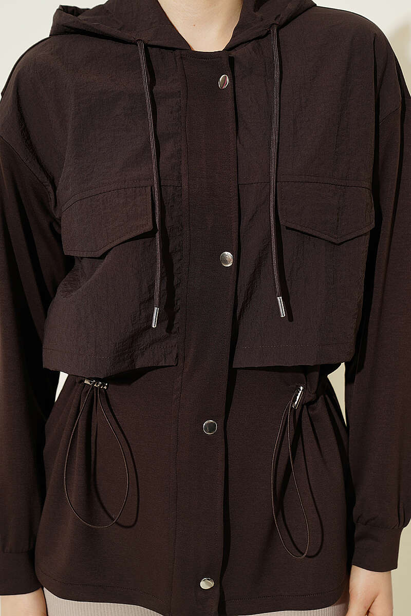 Kapüşonlu Garni Detaylı Ceket Kahve