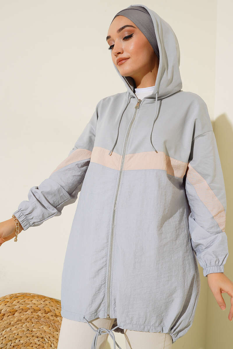 Yeni sezon hırkamız farklı tasarımıyla ilgi çekmektedir. Kapüşpnlu hırkamızın kapüşonu ip bağlamaldır. Bilekleri lastiklidir. Etek uçları tünelli ip bağlamalıdır. Garnili olan hırklamız sezonun favorileri arasındadır.