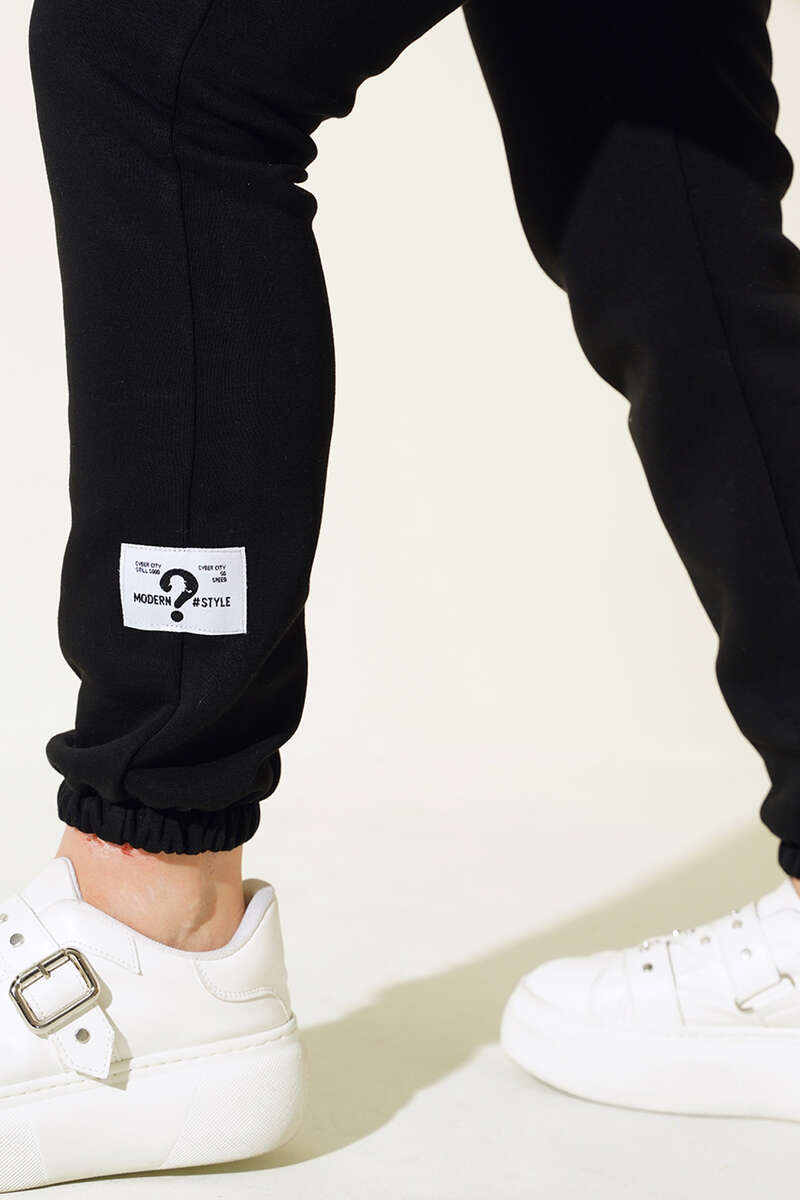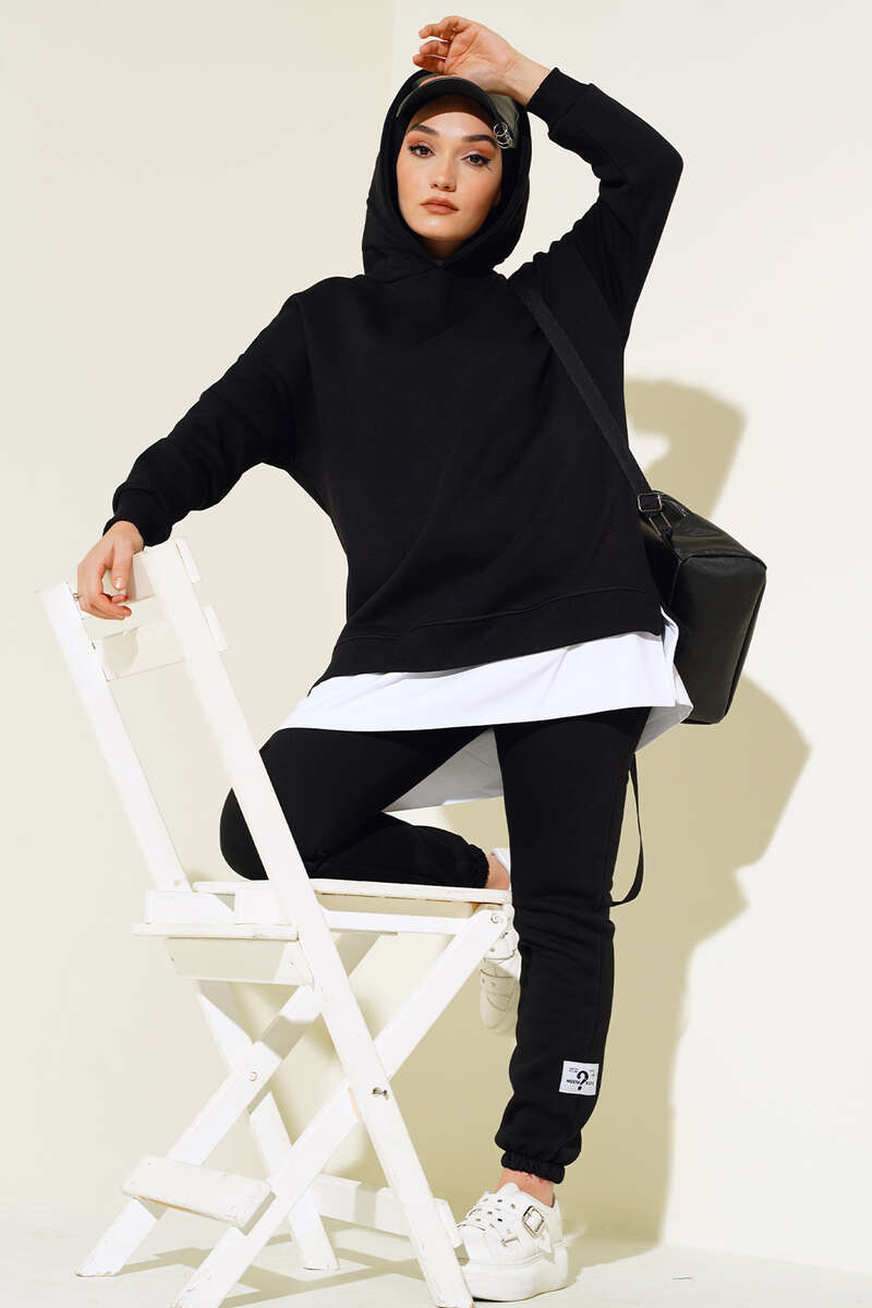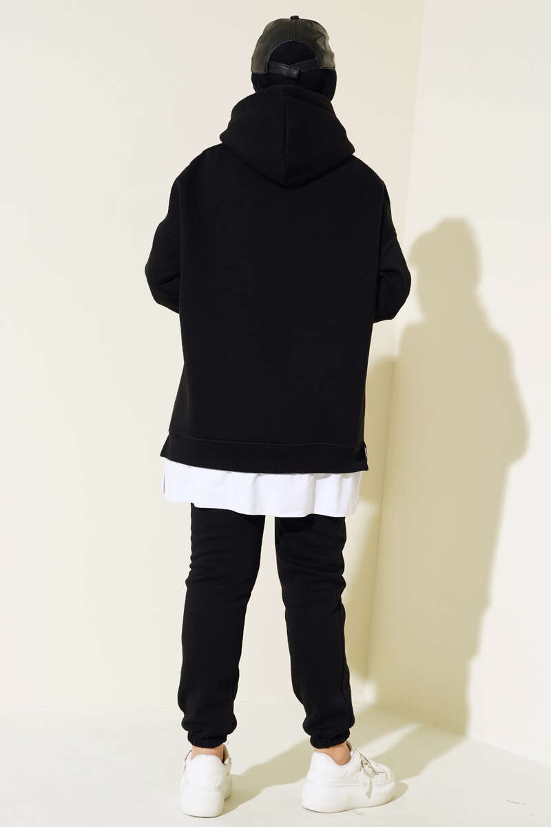 Kapüşonlu Garnili Üç İplik Takım Siyah