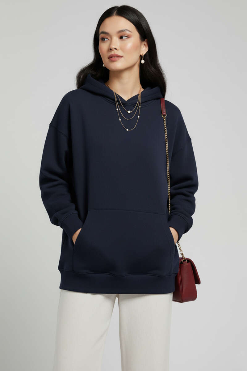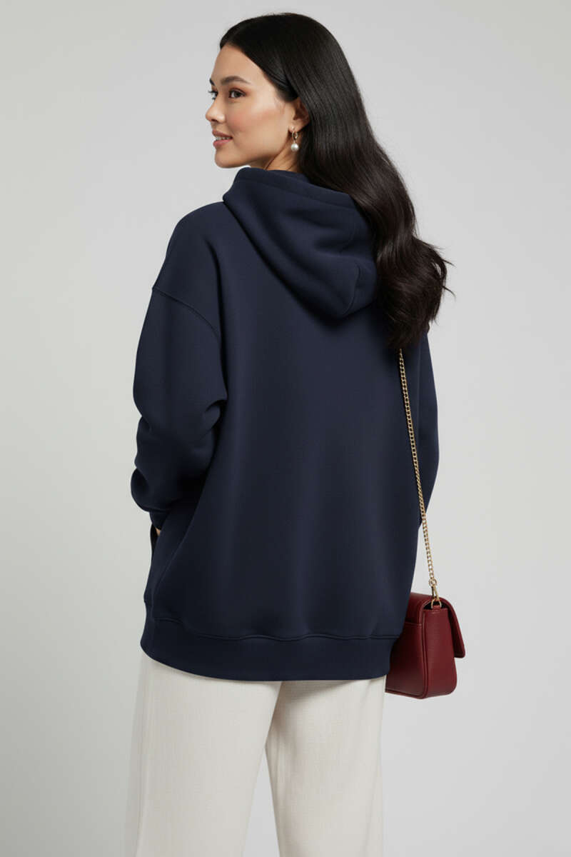 Kapüşonlu Kanguru Cepli Sweatshirt Lacivert