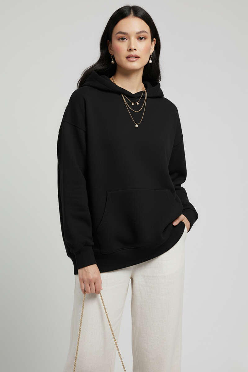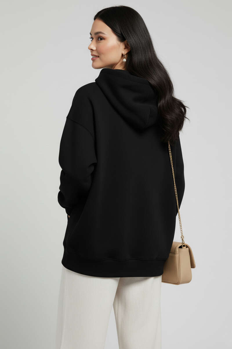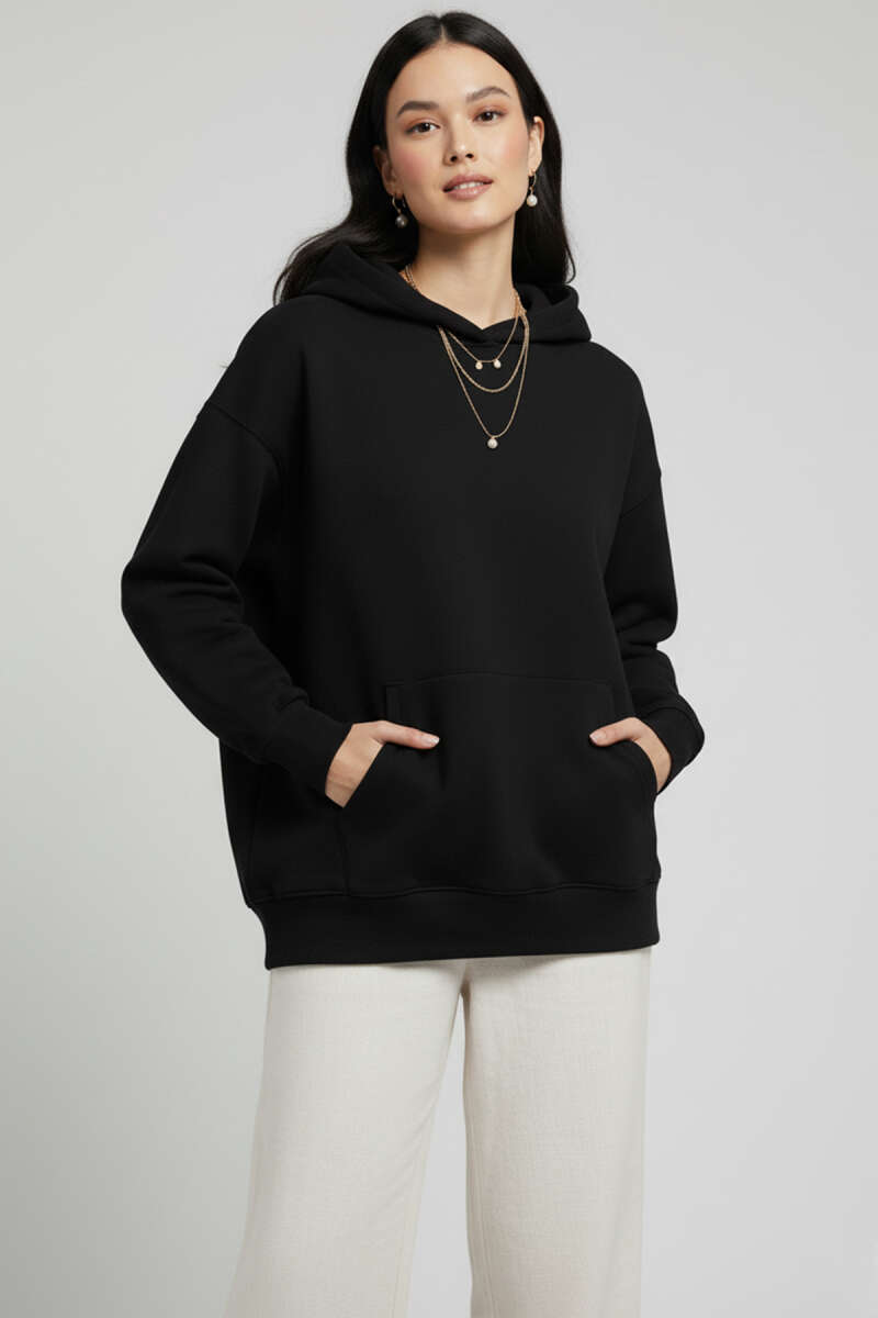 Kapüşonlu Kanguru Cepli Sweatshirt Siyah