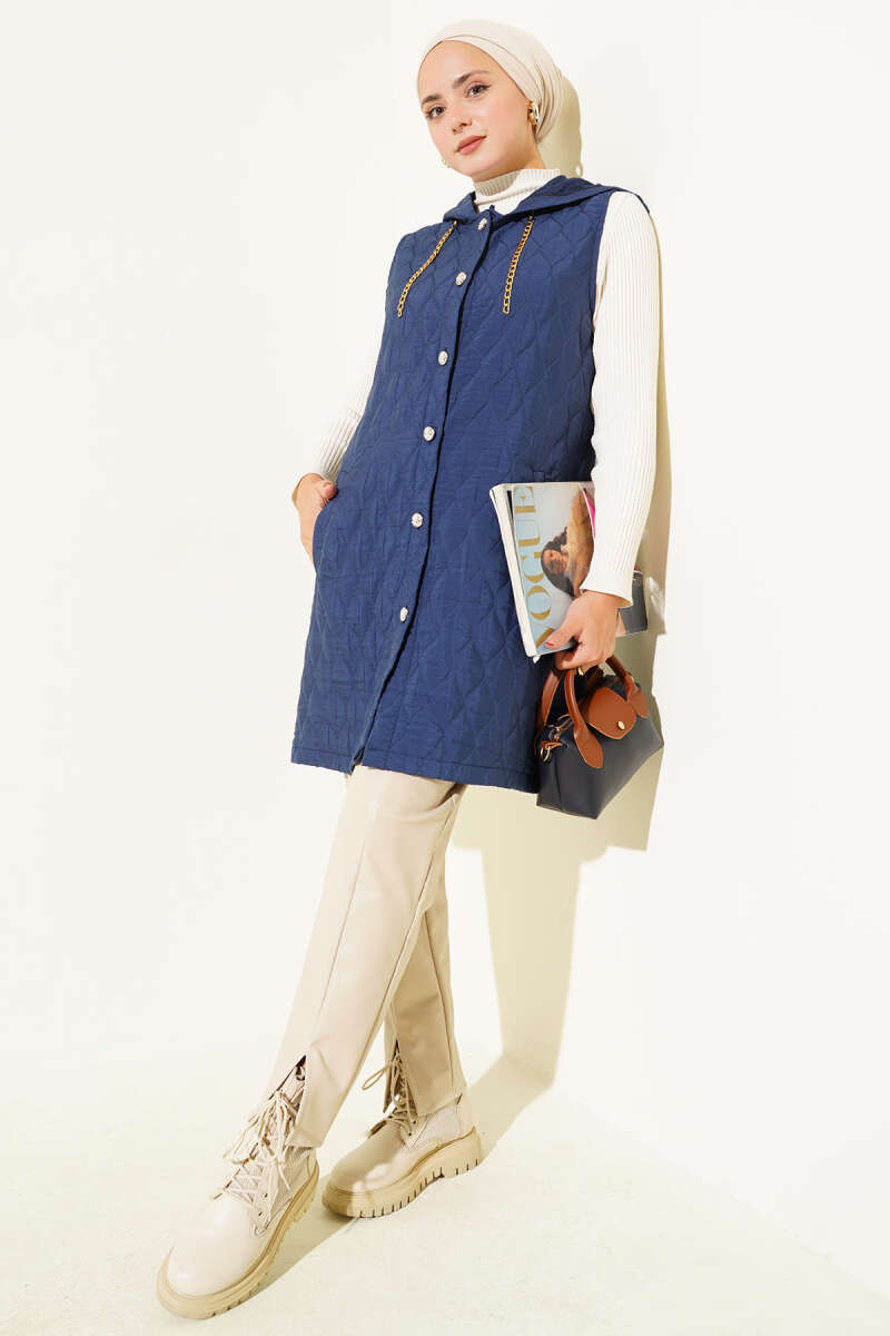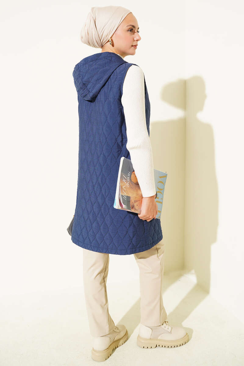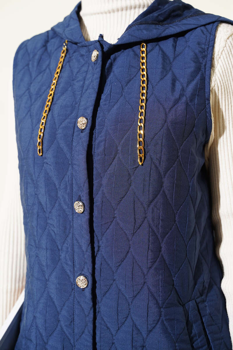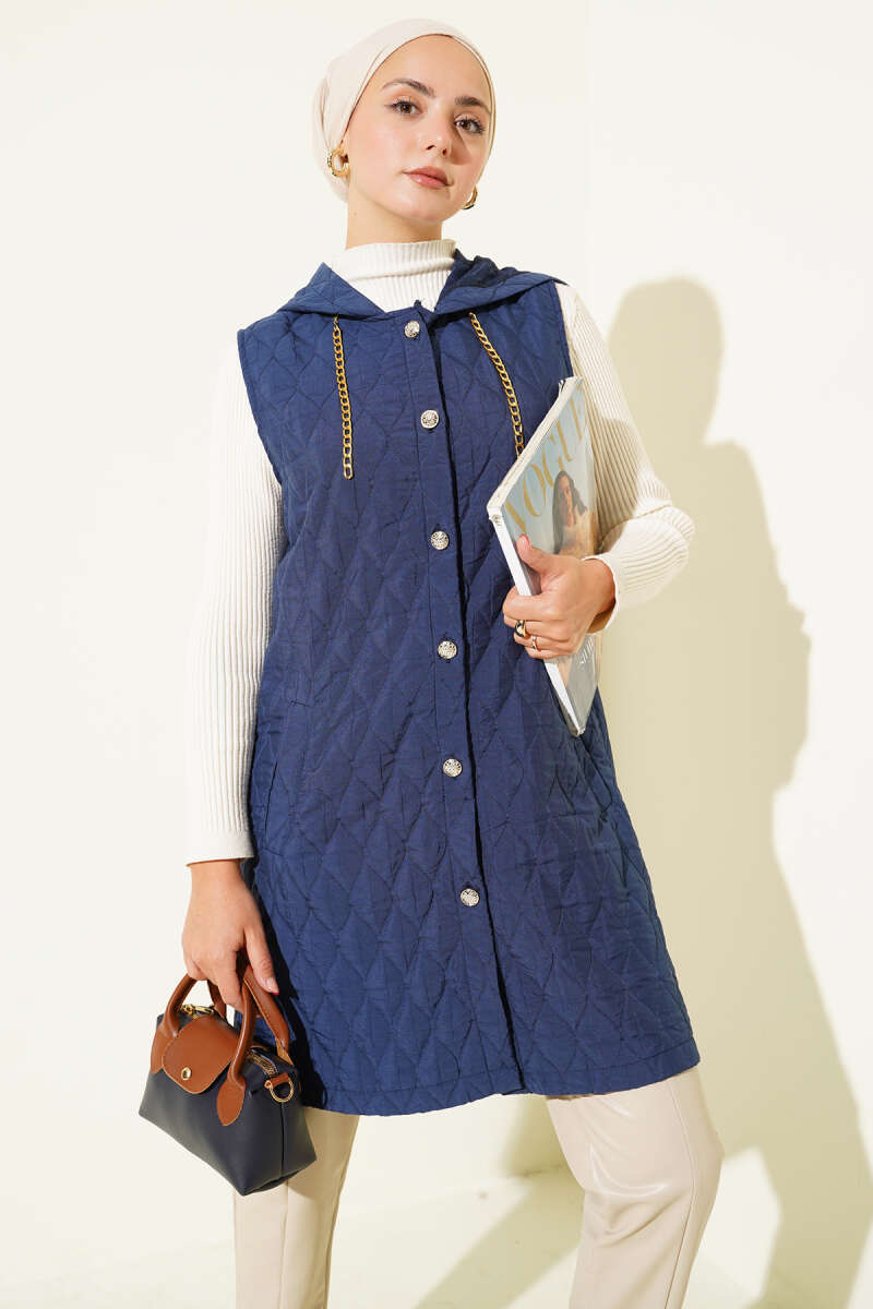 Kapuşonlu Kapitone Kısa Yelek Lacivert