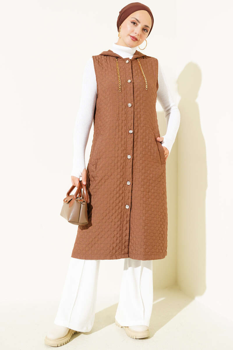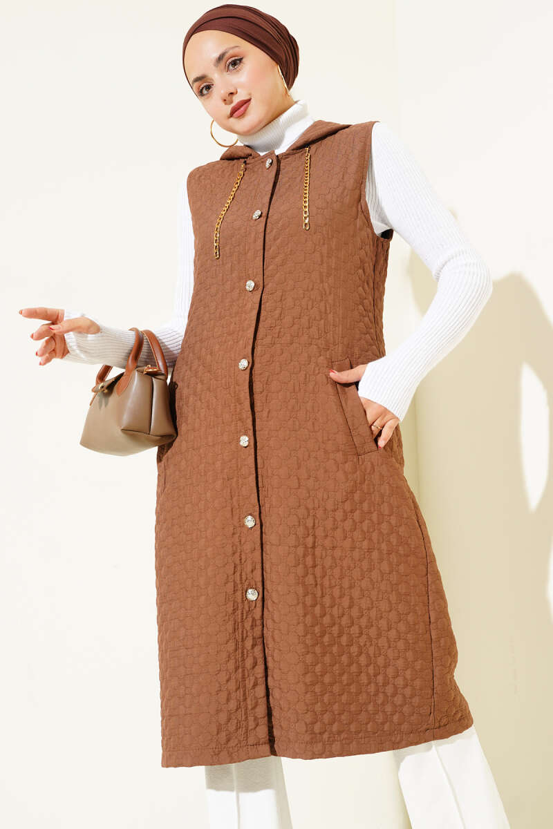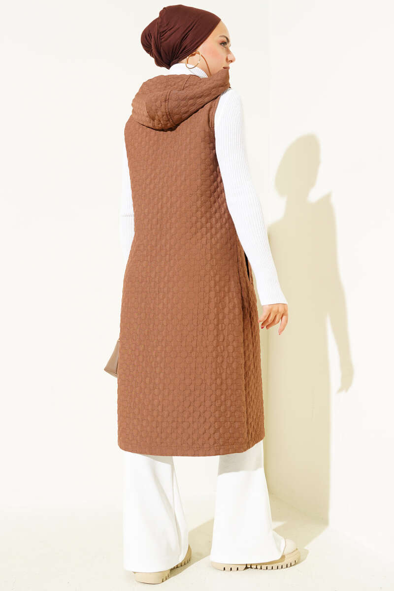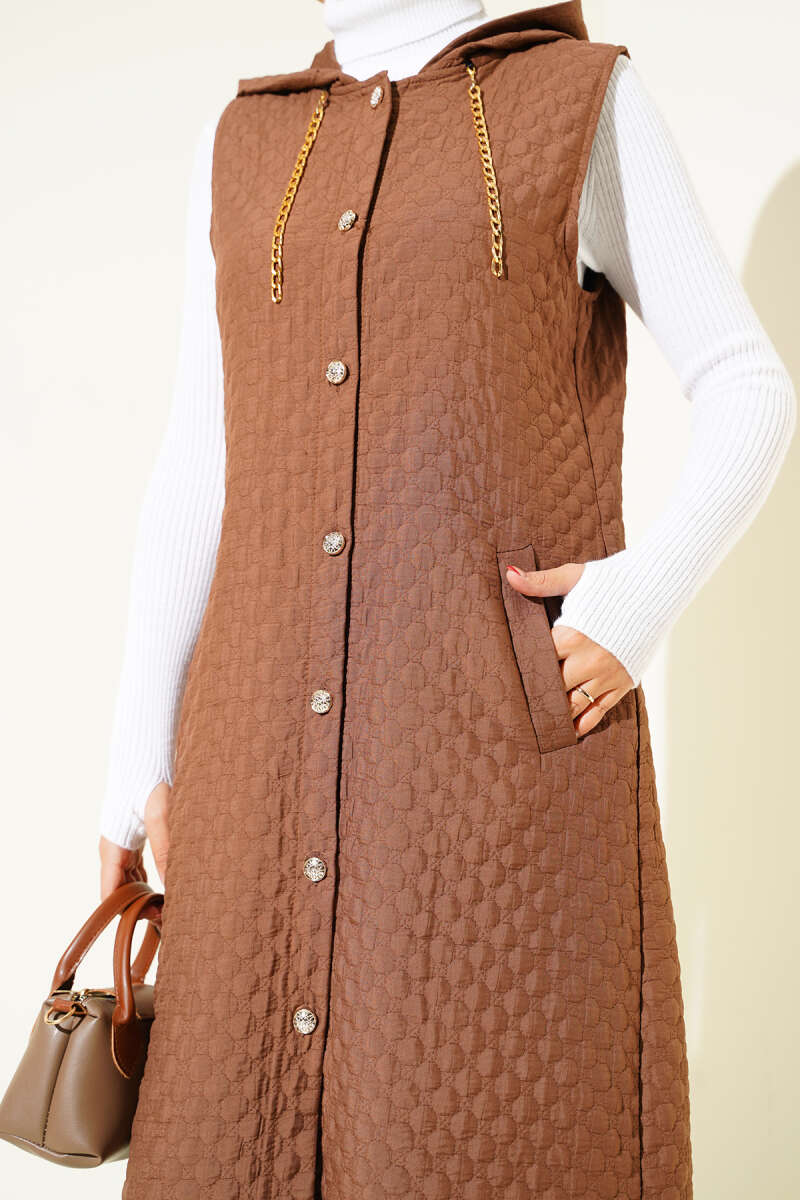 Kapüşonlu Kapitone Yelek Kahve