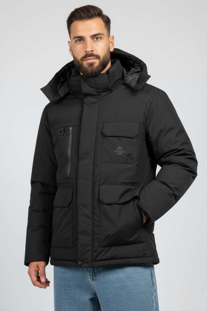 Kapüşonlu Cepli Mevsimlik Erkek Mont Siyah
