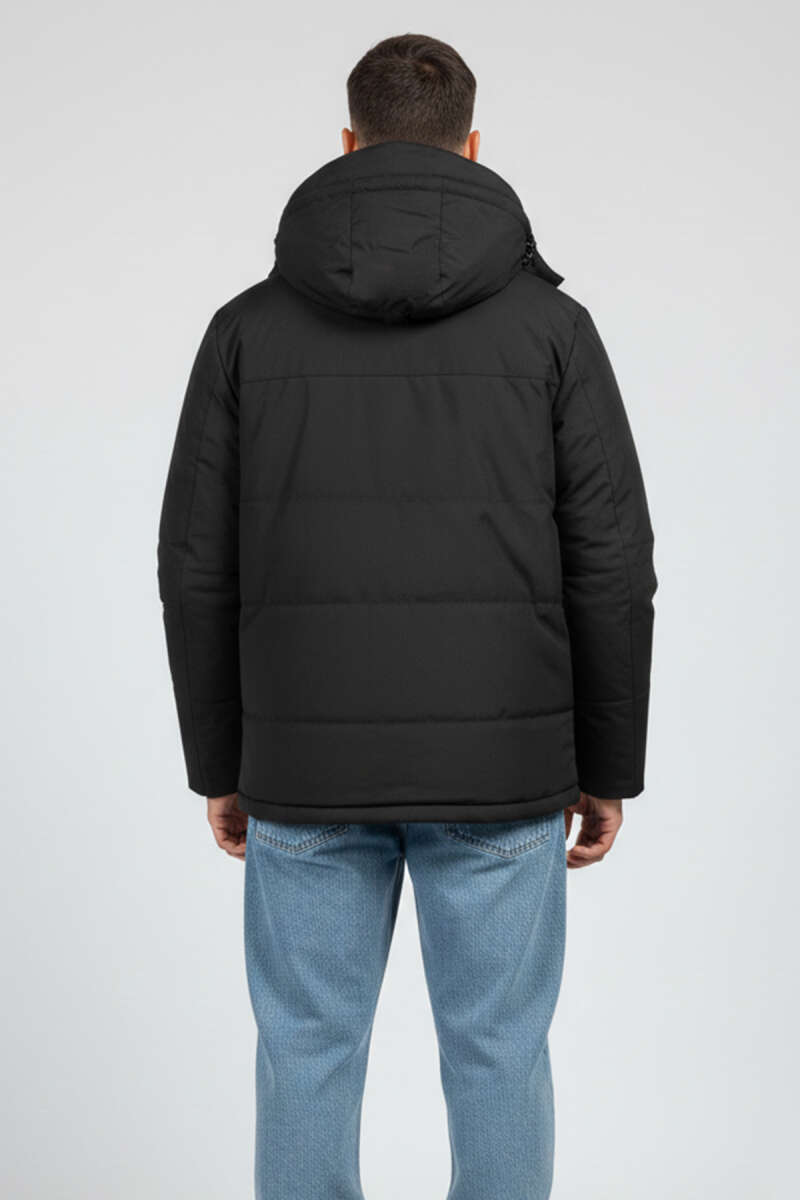 Fermuarlı Kapüşonlu Erkek Mevsimlik Mont Siyah