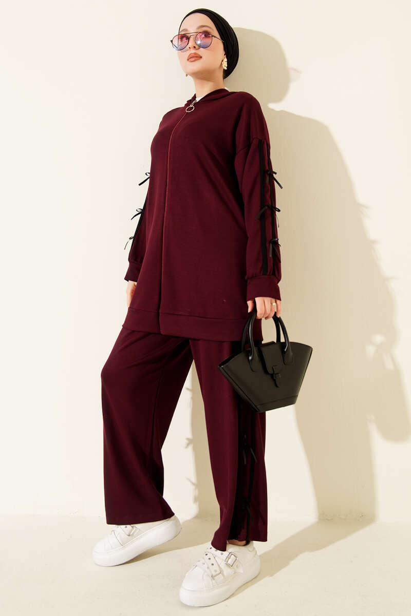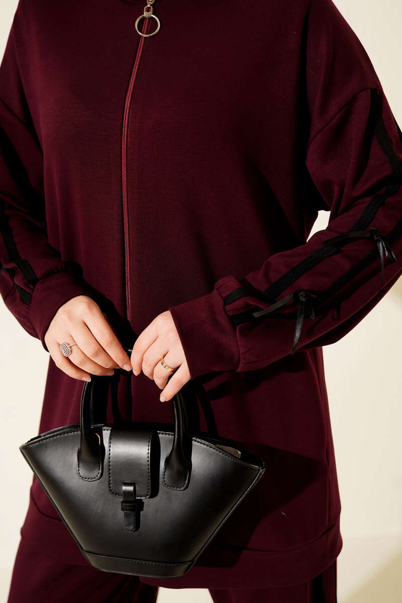Kanguru Cepli Fermuarlı İkili Takım Bordo