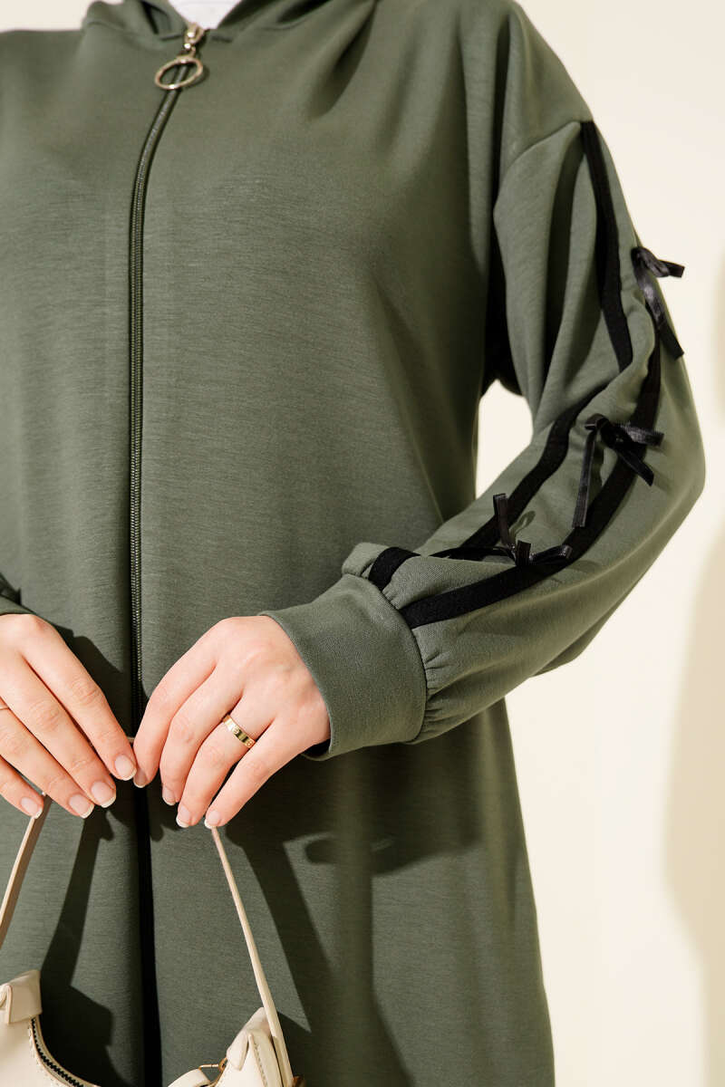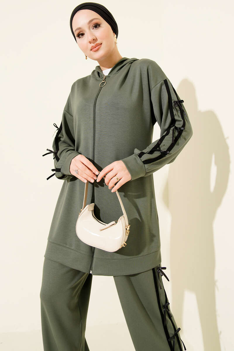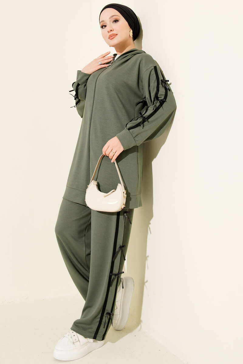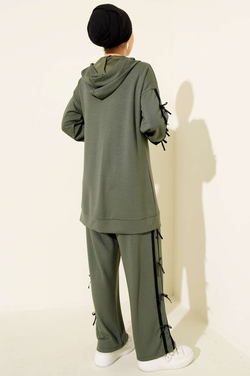 Kapüşonlu Kurdele Detaylı Loyşa İkili Takım Yağ Yeşili