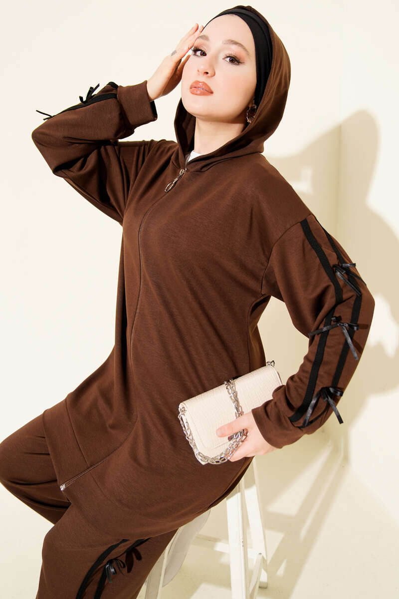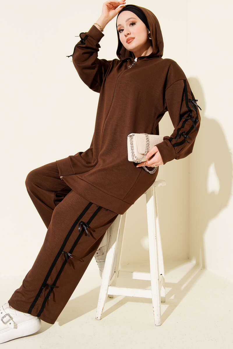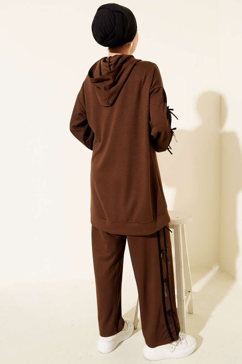 Kapüşonlu Kurdele Detaylı Loyşa İkili Takım Füme