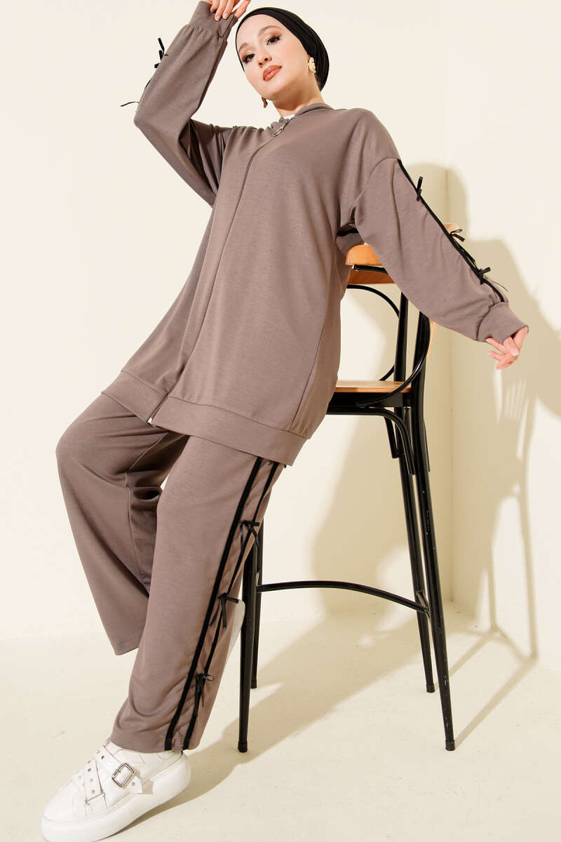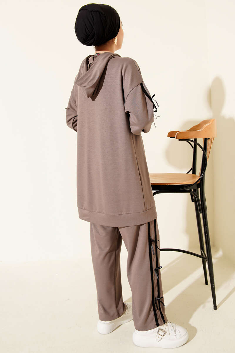 Kapüşonlu Kurdele Detaylı Loyşa İkili Takım Kahve