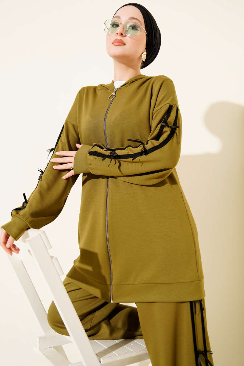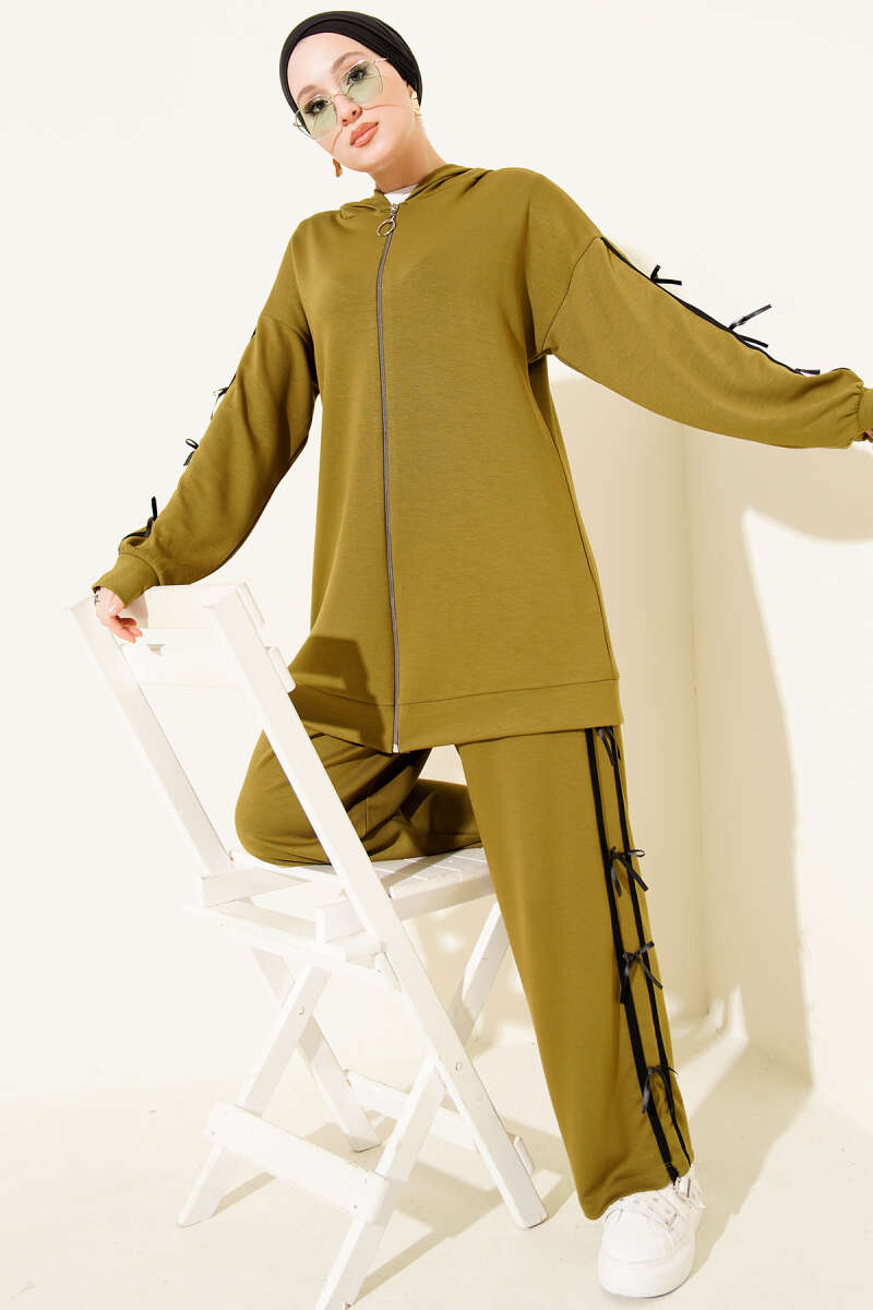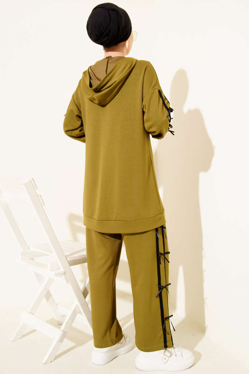 Kapüşonlu Kurdele Detaylı Loyşa İkili Takım Haki
