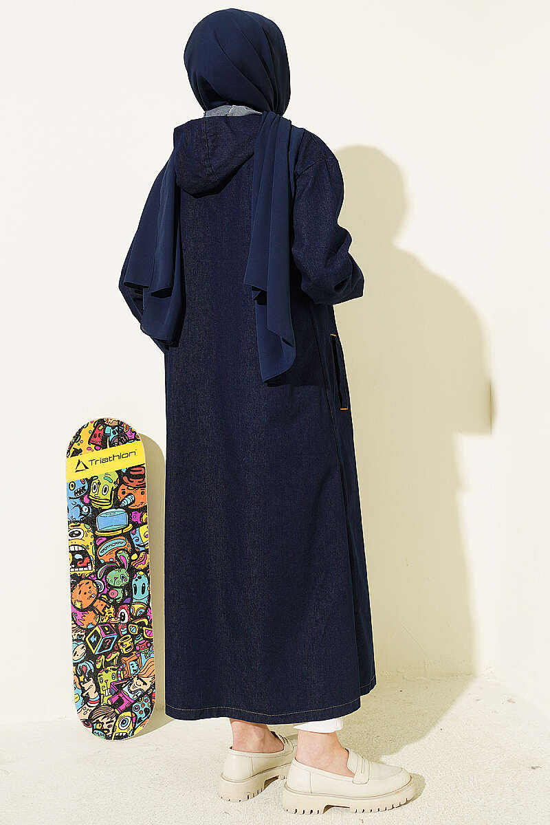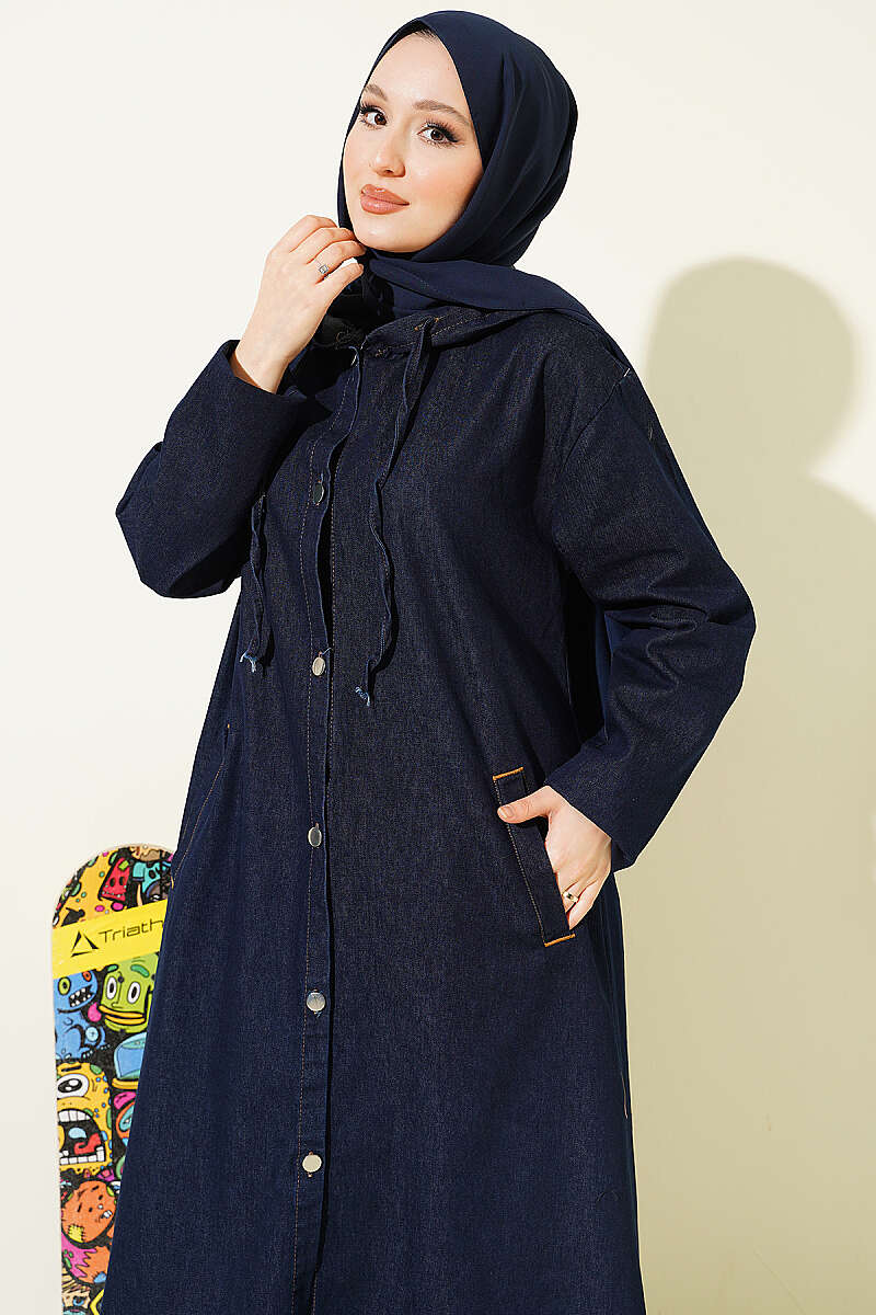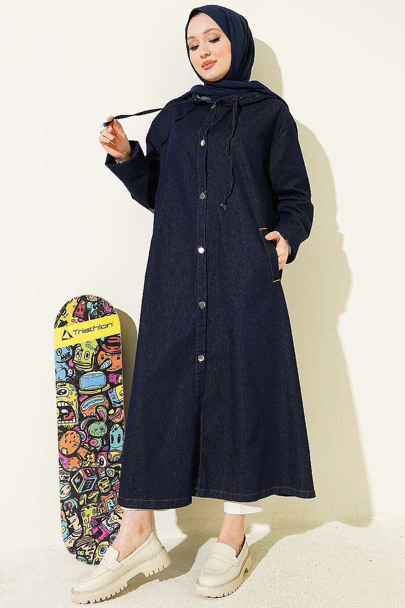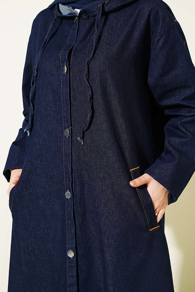 Kapüşonlu Metal Düğmeli Kot Kap Lacivert