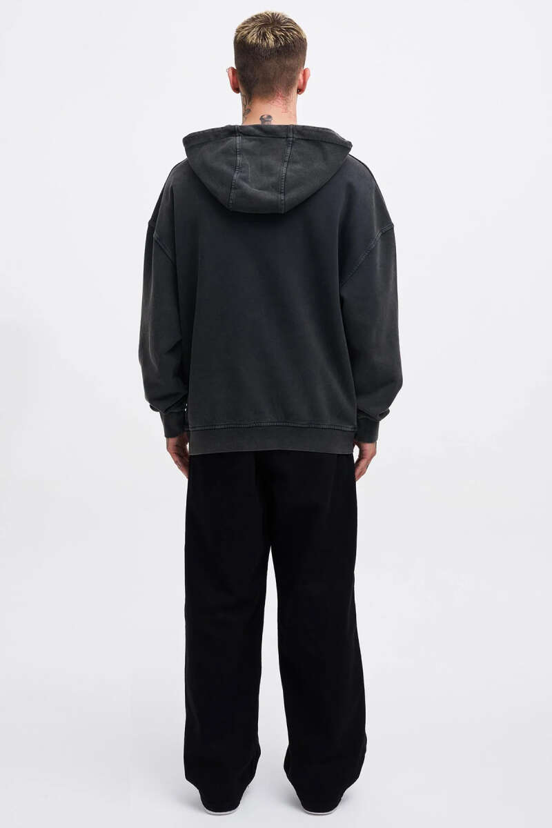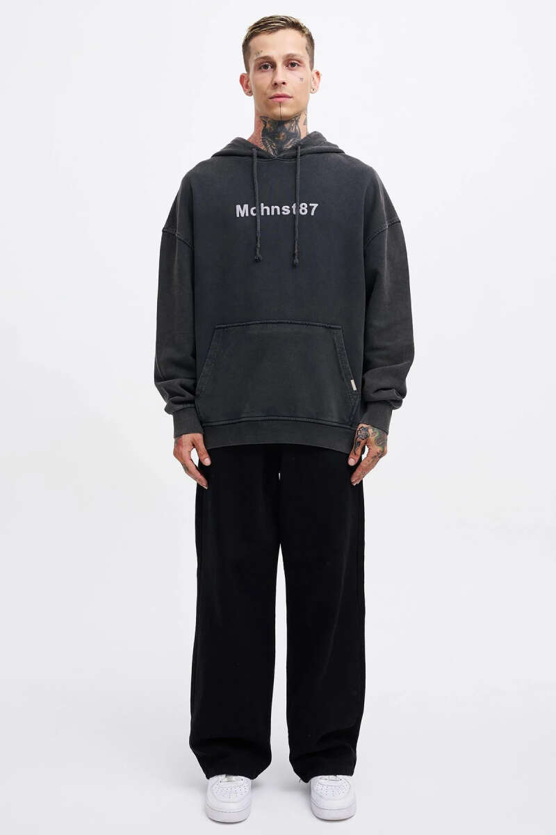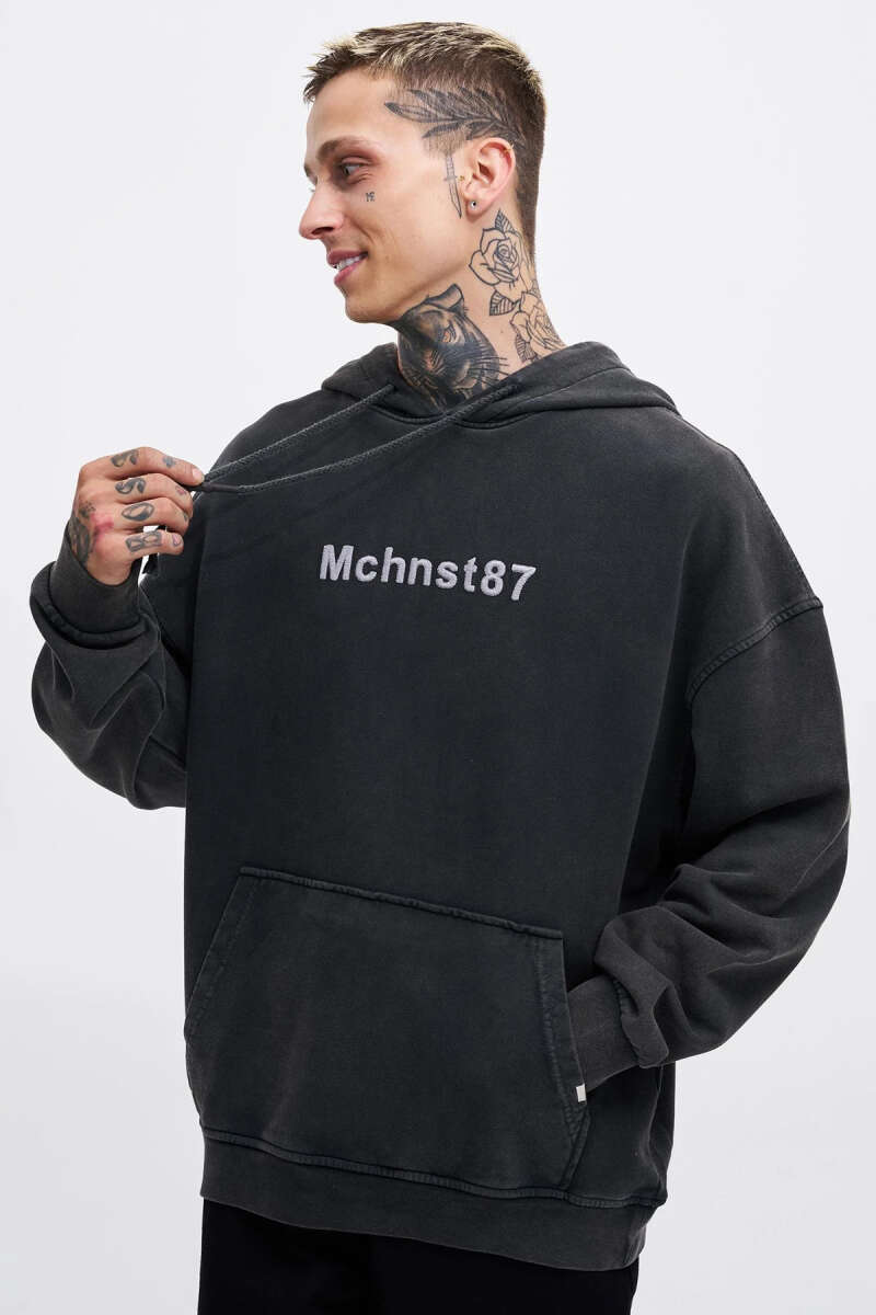 Kapüşonlu Nakışlı Oversize Erkek Sweatshirt Gri