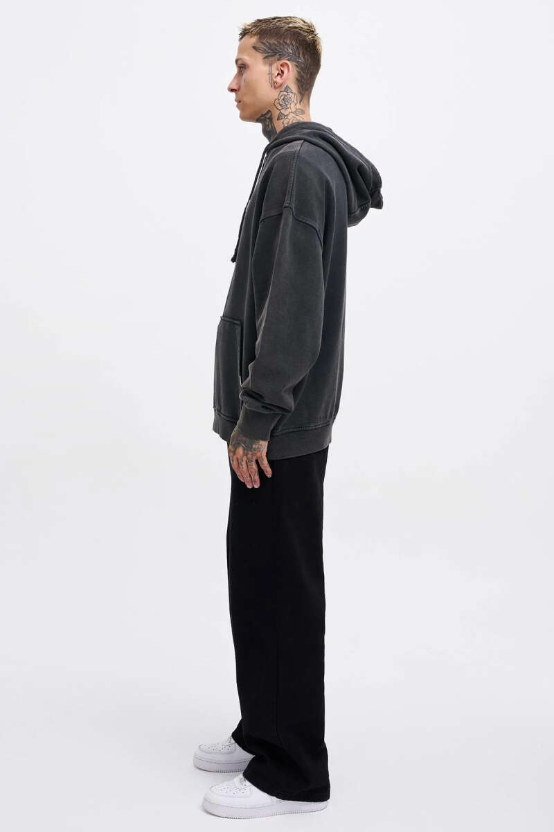 Kanguru Cepli Kapüşonlu Pamuklu Erkek Sweatshirt Siyah