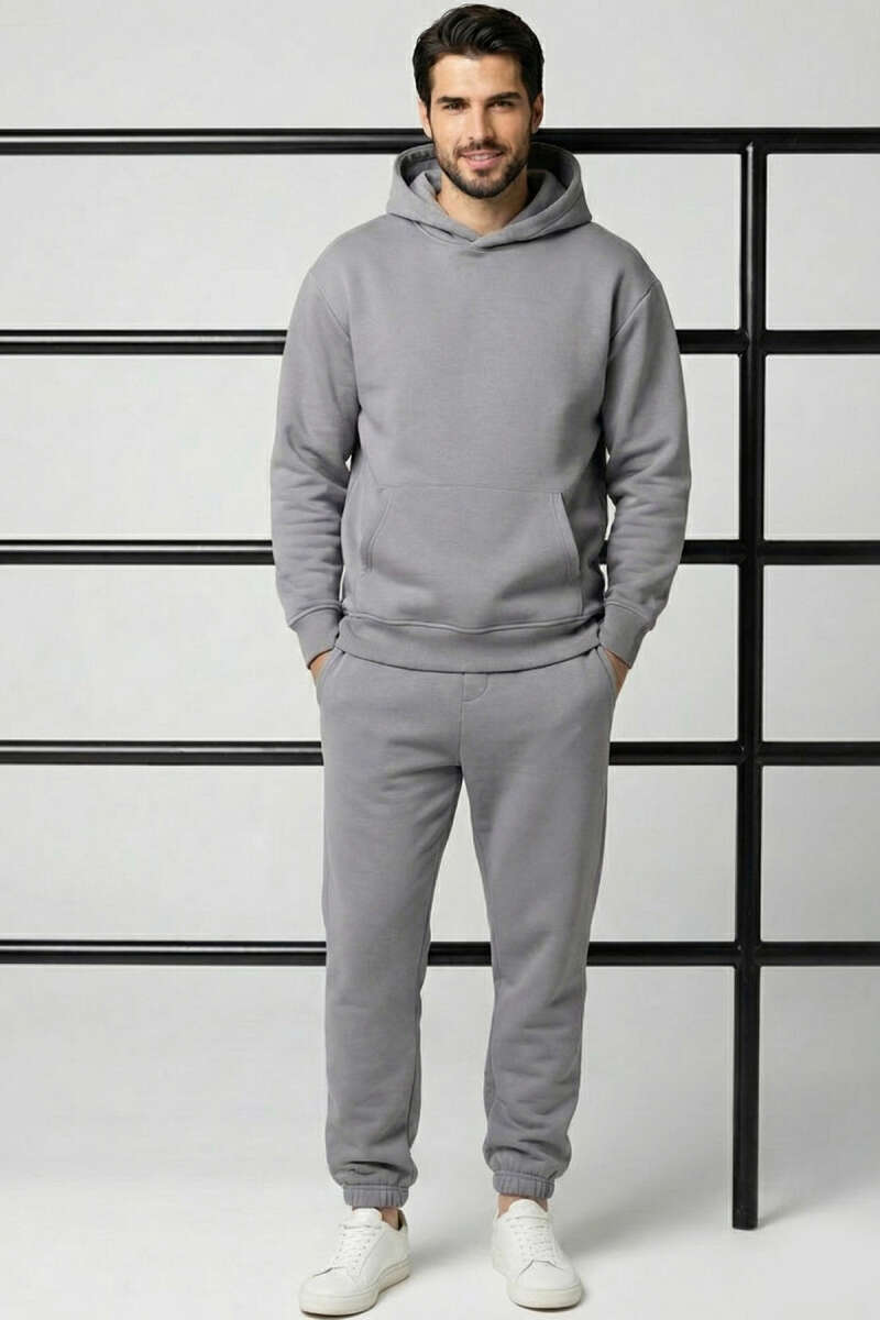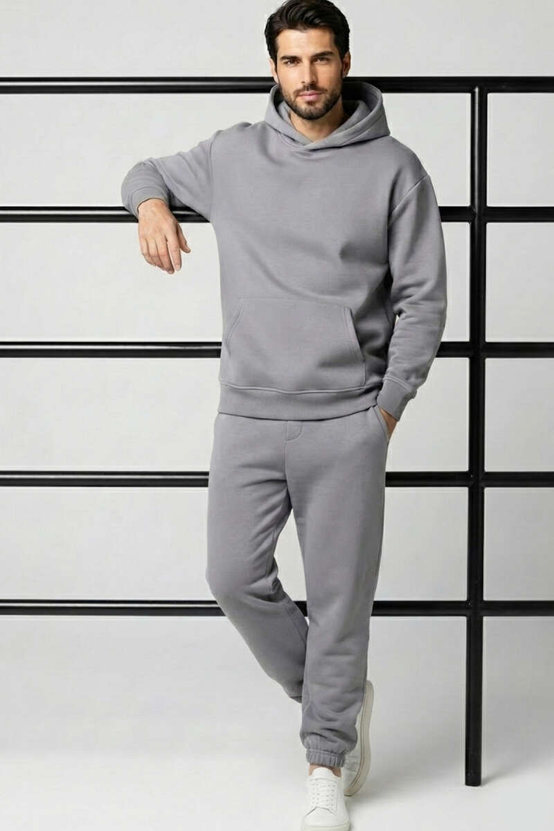 Kapüşonlu Paça Lastikli Eşofman Takımı Füme
