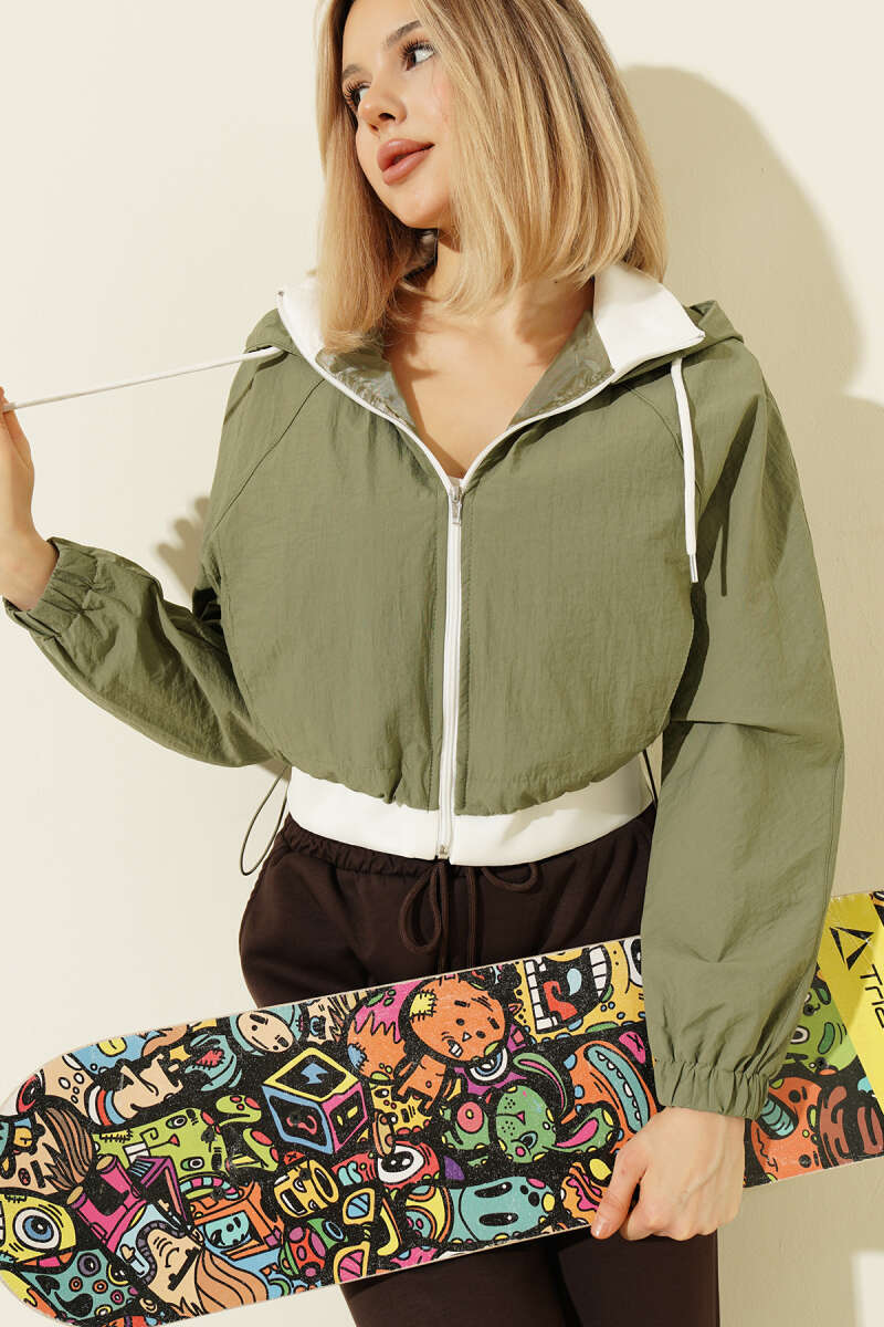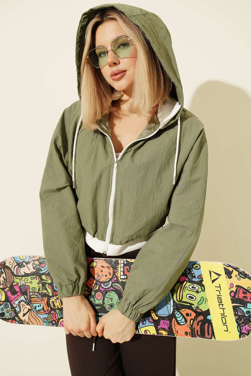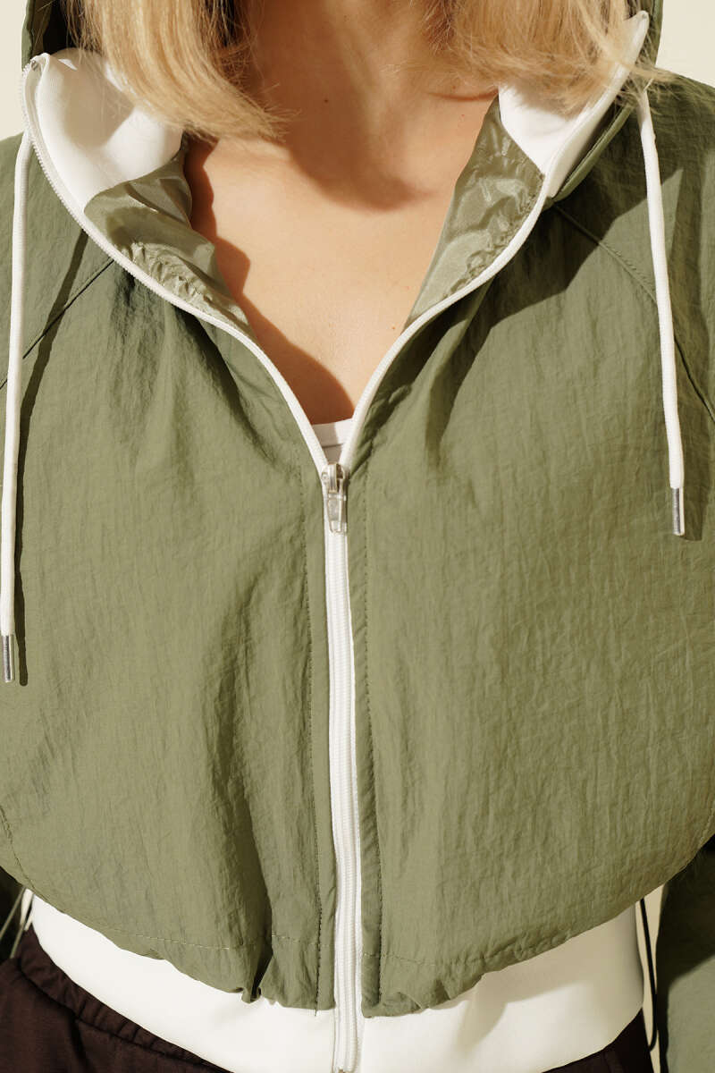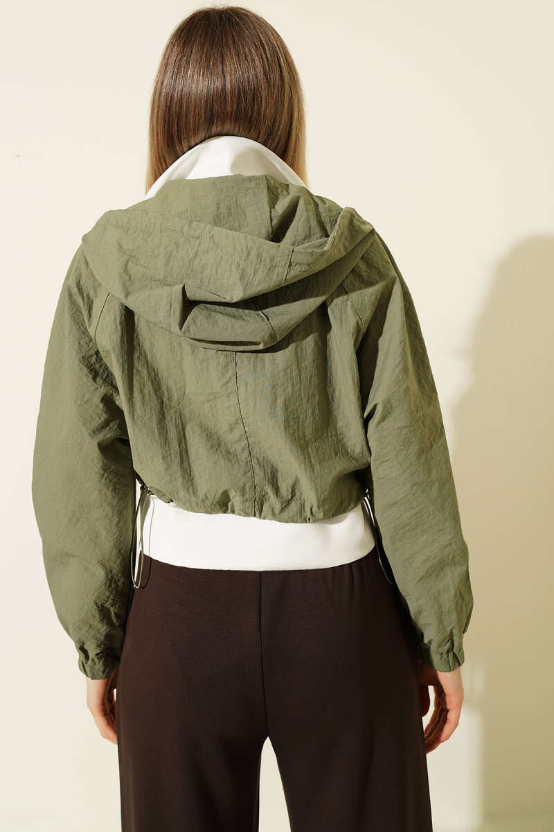 Kapüşonlu Paraşüt Crop Ceket Haki