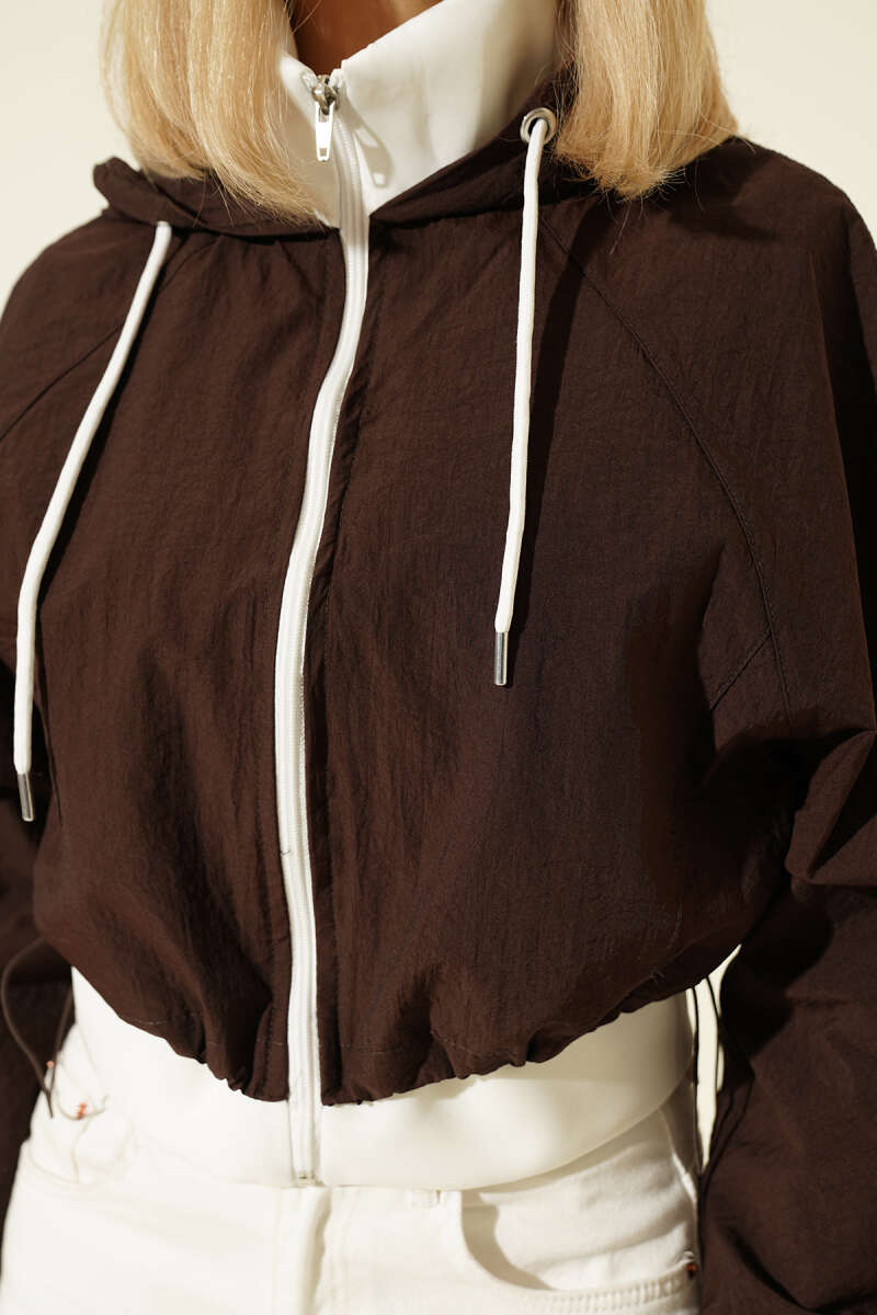 Kapüşonlu Paraşüt Crop Ceket Kahve