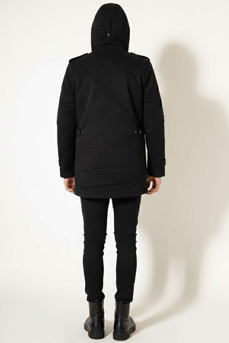 Fermuarlı Kapüşonlu Erkek Mevsimlik Mont Siyah