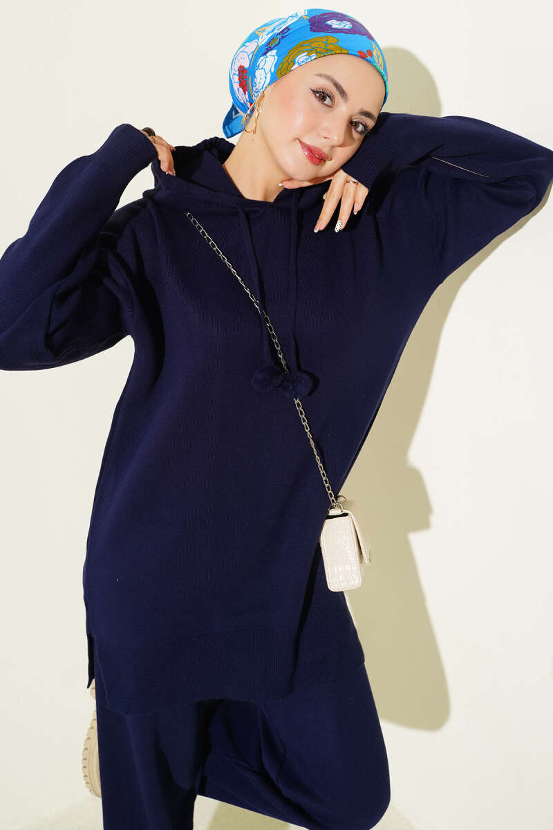 Loyşa Taşlı Bel Tünelli İkili Takım Lacivert