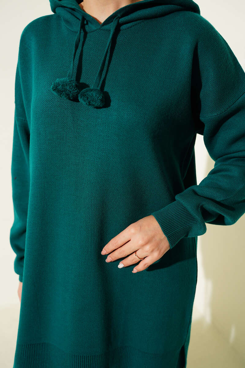 Geniş Ribanalı Triko Tunik Yağ Yeşili