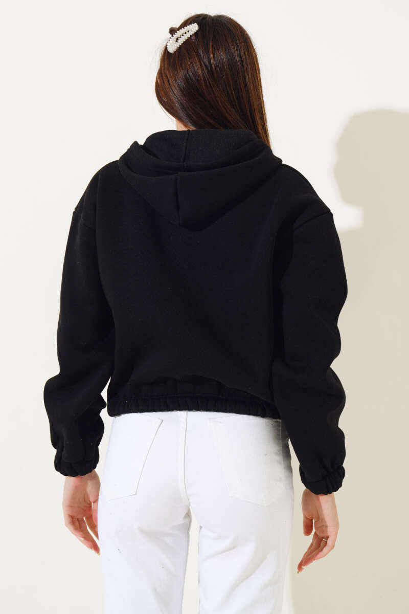 Kapüşonlu Şardonlu Kısa Hırka Gri