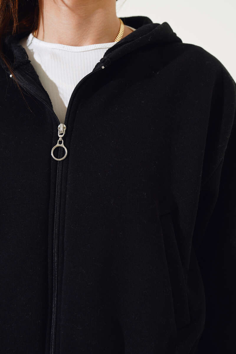 Kapüşonlu Fermuarlı Peluş Mont Kahve