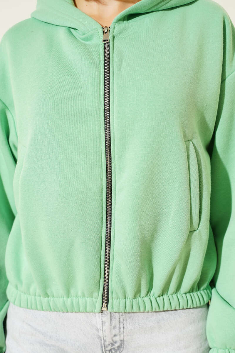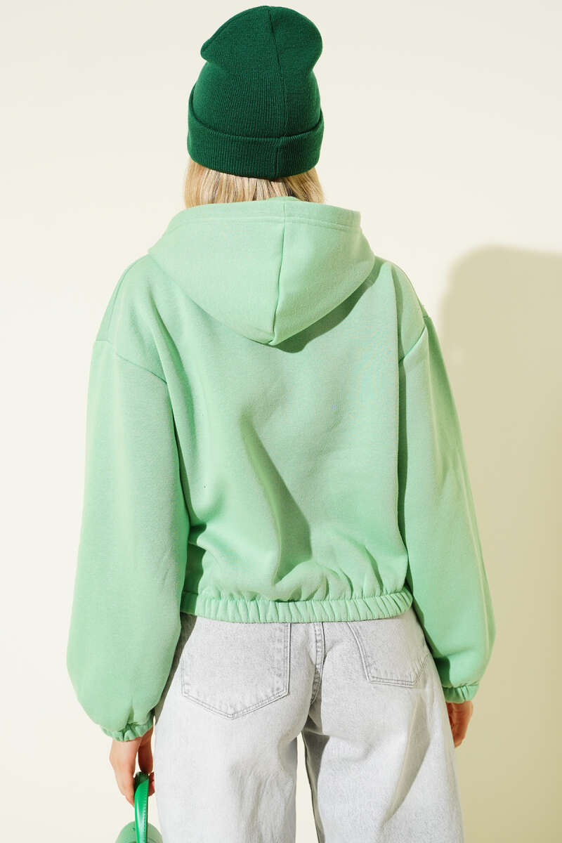 Kapüşonlu Şardonlu Kısa Hırka Yeşil